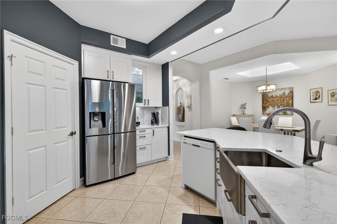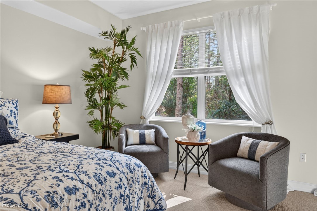 BEST DEAL THIS WINTER IN NAPLES, FL - 15% OFF 3 MO STAY at this turnkey furnished 2/2/1 ground floor condo in Tarpon Bay, a tropical amenities rich gated community. Guests' cancellation means THIS SEASON is open (1/15/26-4/15/26) Please see the links VIRTUAL TOURS & interactive floor plan. Modern, pristine & updated 1620 sq ft under air renting 2 bedroom 2 full baths, 1 car garage space. Quiet & private oasis in updated condo, amenities include infinity edge pool overlooking 15 acre lake w 3 fountains & gazebo over the water for sunsets, fishing, sand volleyball court, canoe & kayak put in, spa, lounging area, grills w tables outside, fitness center, business center, library, catering kitchen. Near clubhouse are Har Tru tennis courts, pickleball courts, bocce, walking trails, bike friendly paths & sidewalks. Tarpon Bay is located 14 minutes from the nearest beach, 20 minutes from RSW airport, 20 minutes from 5th Ave S. shopping, galleries, dining. From elegant foyer enter stunning great room with Chef's kitchen (natural gas) w top of line stainless steel appliances, broad quartz counters including seating for 4 at extended breakfast bar, soft close drawers, full depth pull out drawers, pots/pans/spices, full pantry. Living area has leather contemporary furnishings, cable tv, WiFi. Dining area under tray ceiling seats 6 inside, cozy breakfast nook for 2. From great room & primary suite 3 sets of sliders pocket to the side so open to screened lanai expanding living space & adding lush view of preserve. Dining outside for 6, loungers for 2. Primary owner's suite has King bed, OEKO-TEX linens, European body pillow, flat screen tv, large en suite bath w dual sinks, enclosed WC. Split floor plan has 2nd bedroom on opposite side of condo w Queen bed, extra storage, quality linens, tv. (This is a 1759 sq ft under air/2428 total sq ft 3bd/2ba/2car condo but owners lock off one bedroom & a walk in closet to 1620 sq ft for rent.) SORRY NO PETS allowed per HOA rules, NO SMOKING allowed period. Security deposit fully refundable if no issues, tenant pays 11% FL short term (under 6 mo) rental tax, fob fee for gated entry, application fee to association & end of stay cleaning.