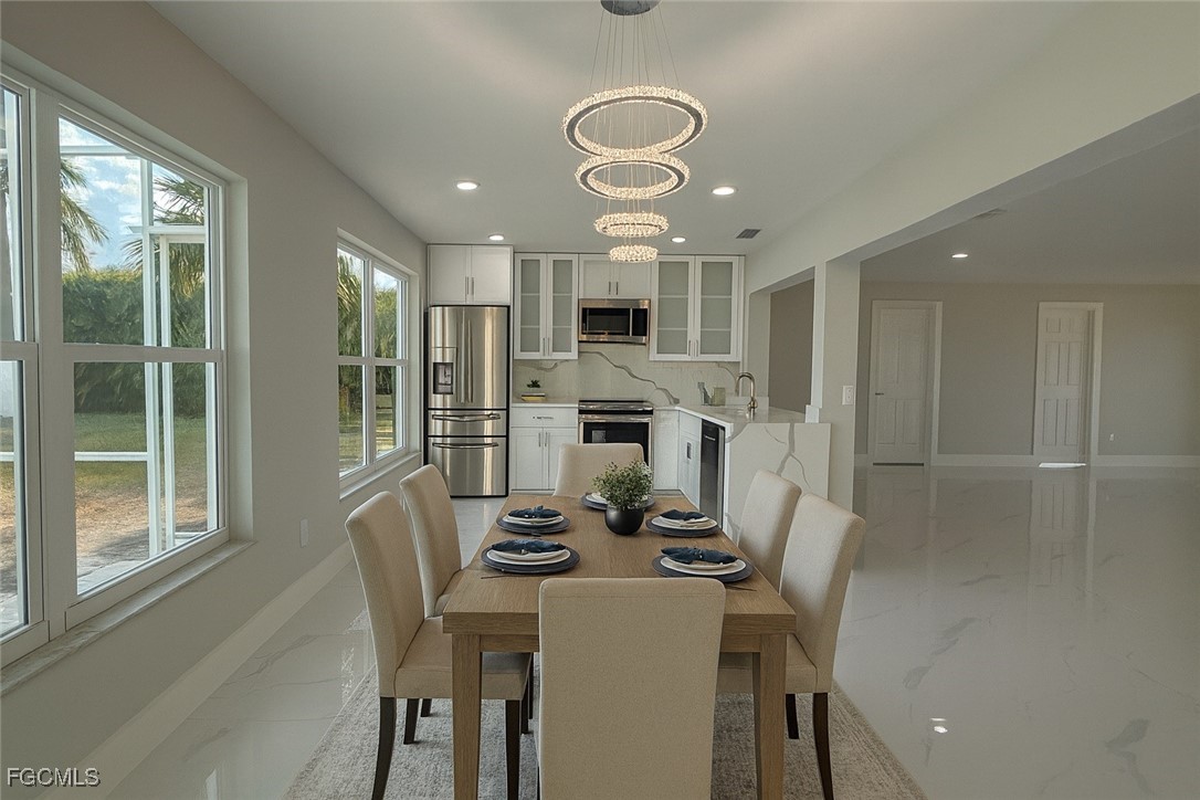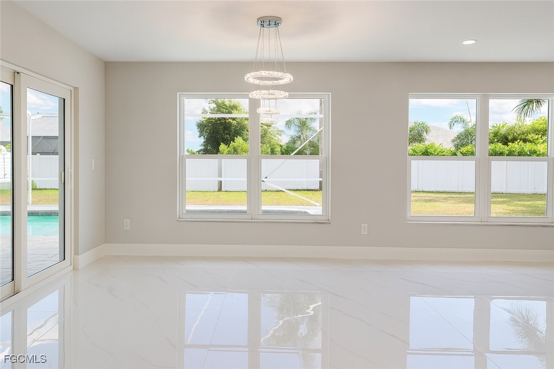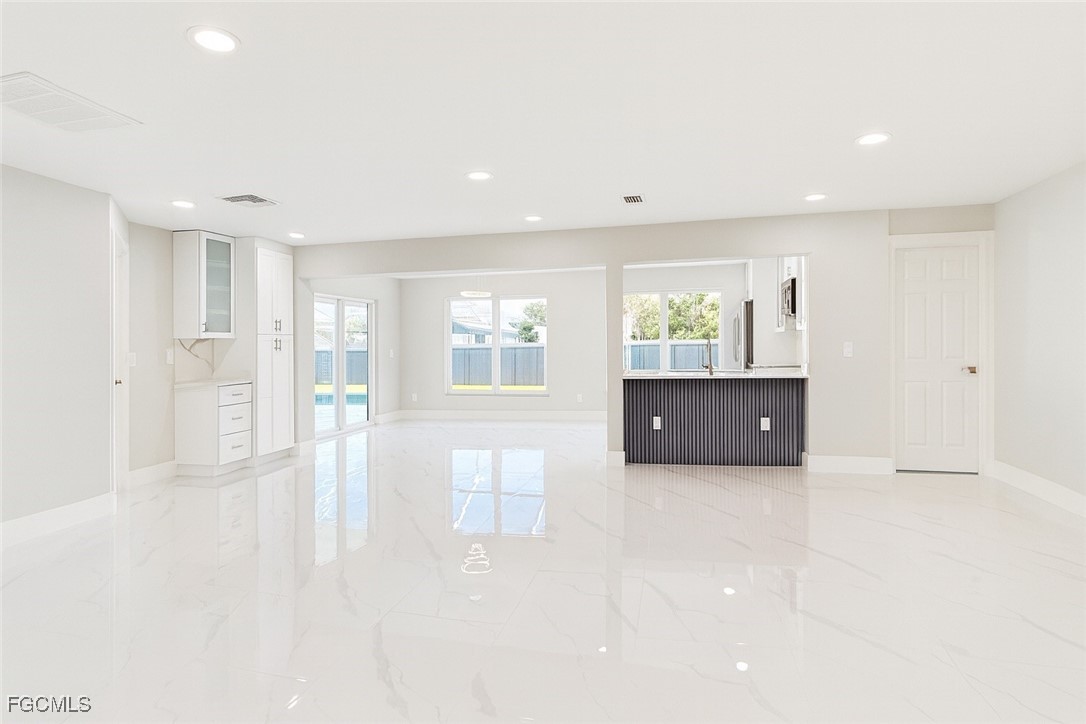 Located in Southeast Cape Coral, this 3-bedroom, 3-bath home features a completely updated interior with modern construction finishes throughout. The property offers tile flooring, contemporary lighting, a spacious open layout, and a redesigned kitchen with upgraded cabinetry, countertops, and appliances. All bathrooms have been fully redone with current materials and fixtures. The home also includes a private pool and is conveniently situated near shopping centers, restaurants, and major retail stores, providing excellent access to everyday amenities.