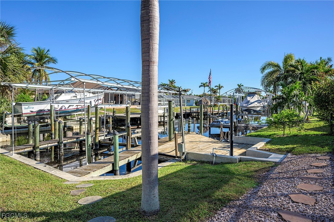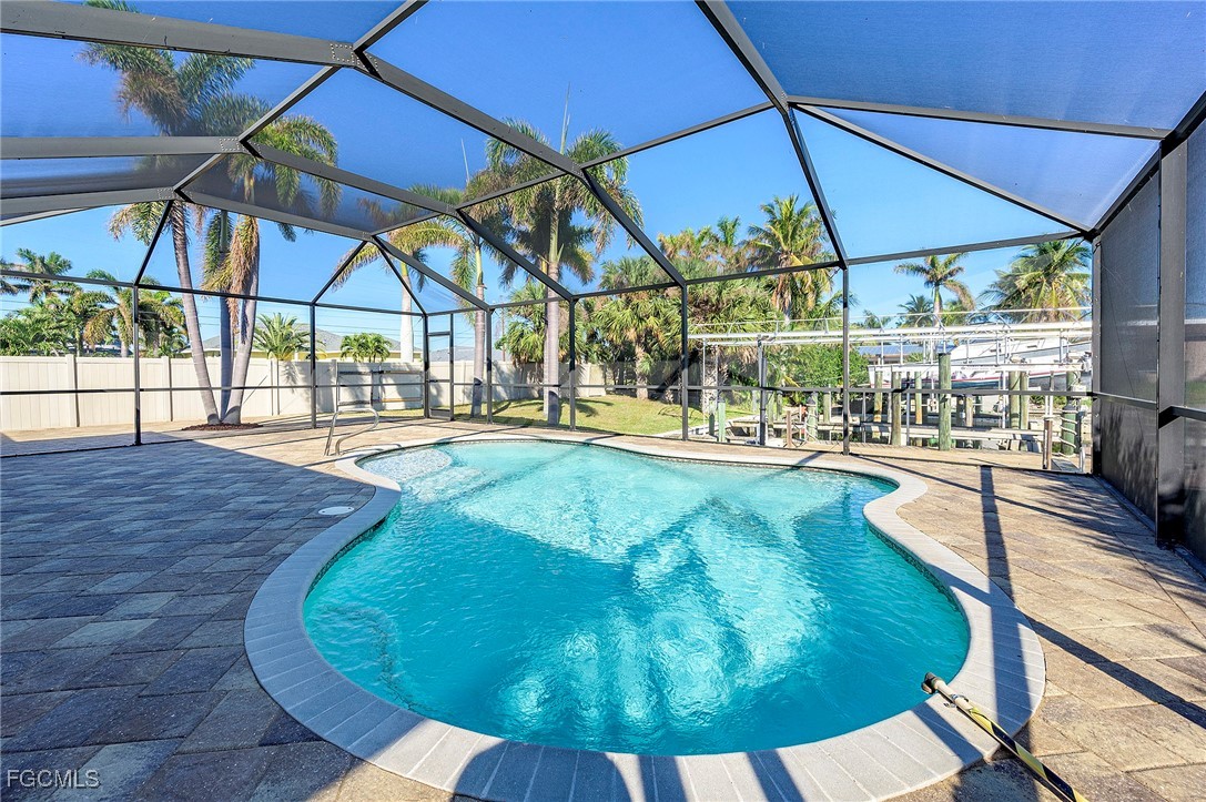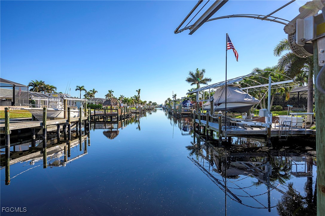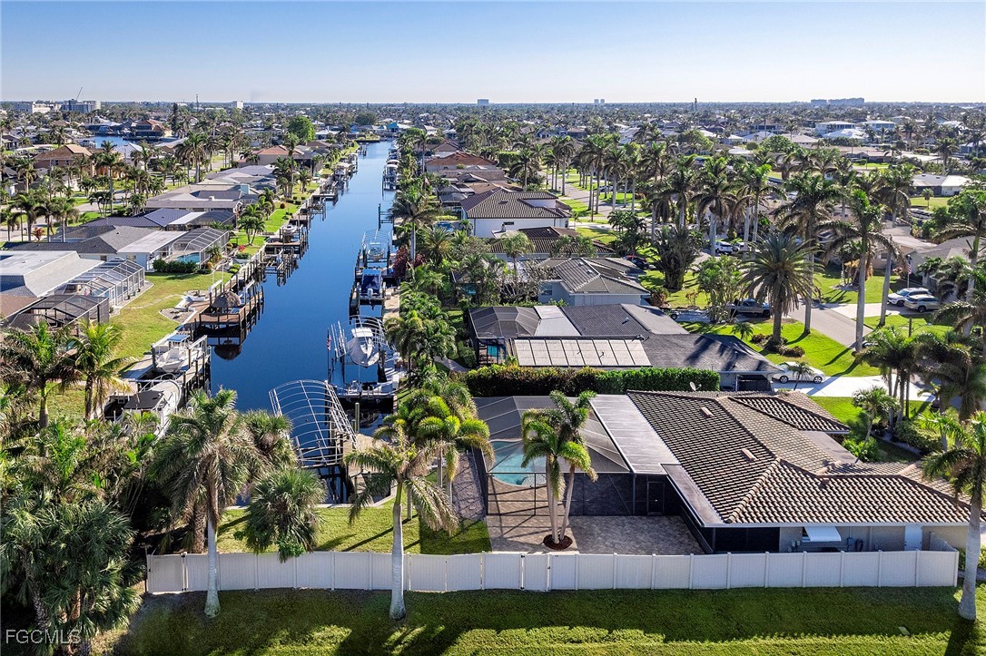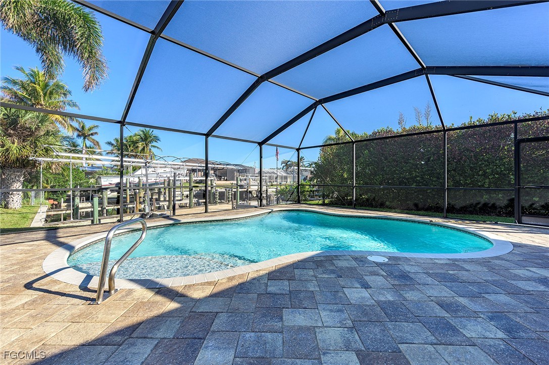 This home is Located on the most Beautiful Royal Palm Tree Lined Street in Cape Coral, tucked away off Pelican Blvd on the way to Tarpon Point, this 2 bedroom, 2 bathroom (1 with pool/outside access) home has everything you have ever dreamed of. This home is a Waterfront Canal Home offering Gulf Access and No Bridges or Locks. You can be in Open water in 7 minutes. Hurricane Survivor! This Lovingly Maintained Tropical Oasis offers so many upgrades. Pool Heater, Hurricane Impact Windows, Hurricane Impact Garage Door, Refrigerator, Dishwasher, Washer, Dryer & Garbage Disposal. 14,000lb Boat Lift (With Canopy not pictured) Extra $500 per month to use the boat lift. Your day starts with a dip in your Heated Saltwater Pool, onto a Kayak Ride down the canal, back to throw a rod in from your private dock to catch many different fish. Sunbath for as long as you wish with full sun on your patio all day. Relax under your covered lanai and grill up some burgers, before you hop on your boat to catch the most beautiful sunset. After the sunset you can catch an evening band at one of the many waterfront restaurants nearby. Arrive back at your home admiring the lighted landscape for an evening swim and on a cool night light the fire pit for some Smore's Making and watch Thursday Night Football on your Outdoor TV. This home offers a huge side yard. Not a lot of homes in SWFL offer the amount of Outdoor usable space as this home does. For the Renter/Buyer, this home has been a successful STR (Short Term Rental) and comes furnished/Turnkey. You can have a lease to purchase option also. There are so many things to do and see in SWFL. For Boating Enthusiasts you will be in heaven with all of the places you can take your boat too. An Abundance of Restaurants (some only to be located by sea), Captiva Island, Naples, Sanibel Island, Lover's Key. Anchor your Boat off Ft. Myers beach and spend the day frolicking around town. Just to Name a Few. Tarpon Point Marina (shops and dining): 8 min Drive (also accessible by boat) Cape Harbour Marina:(shops and dining) 10 min Drive (also accessible by boat) Cape Coral Beach: (public beach) 10 min Drive Ft. Myers International Airport: 40 min Drive Punta Gorda Airport: 40 min Drive Downtown Cape Coral (47th Place) Many Shops and Restaurants - 10 min Drive. Schedule your private showing today