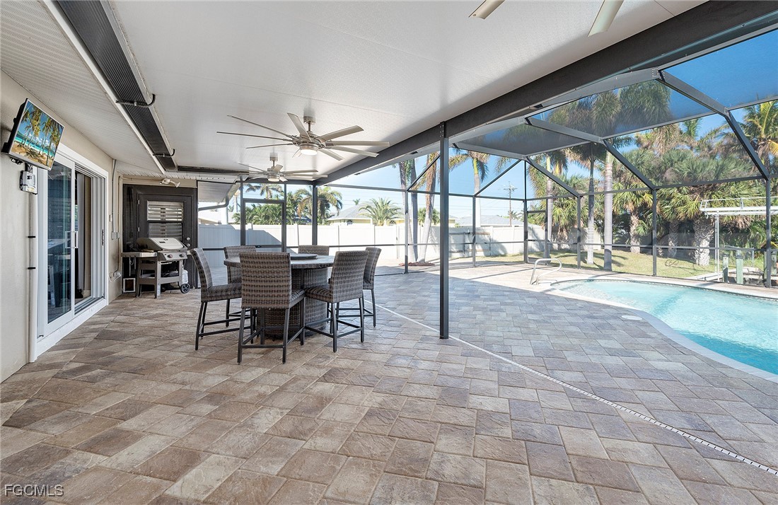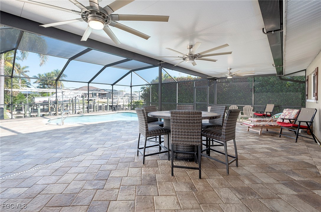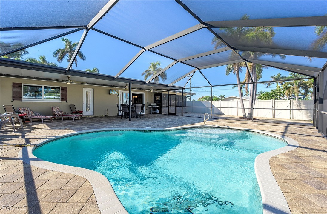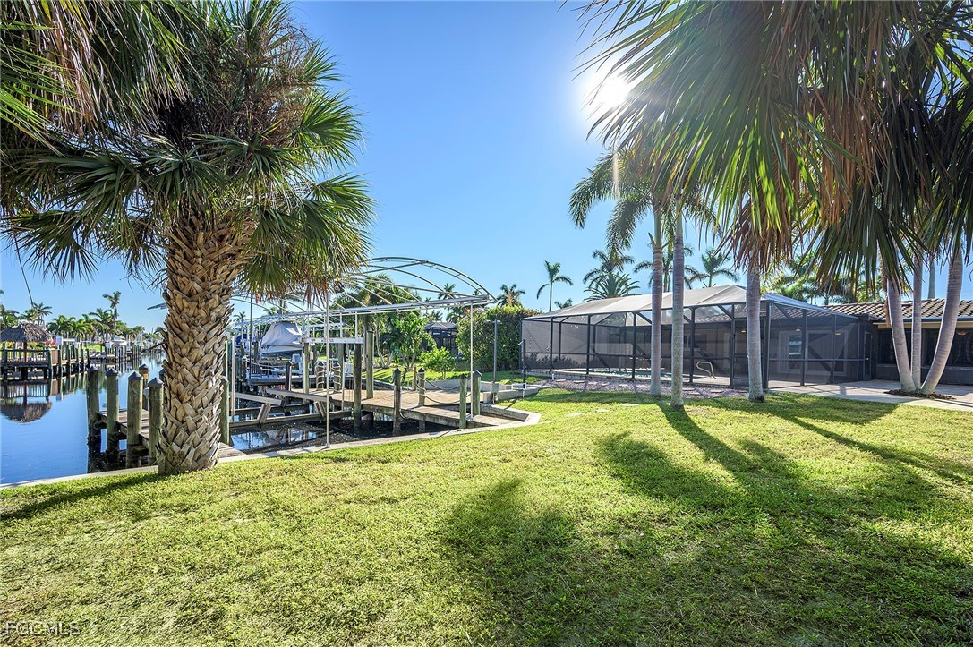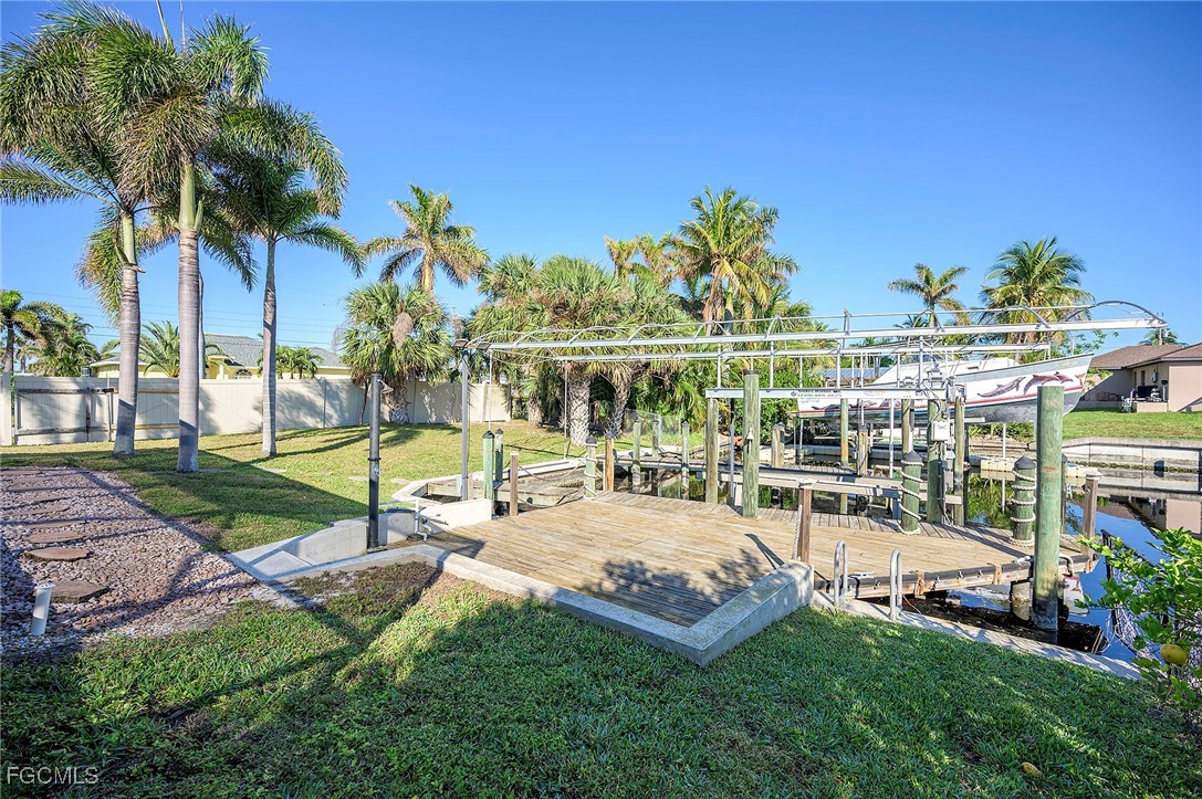 This home is Located on the most Beautiful Royal Palm Tree Lined Street in Cape Coral, tucked away off Pelican Blvd on the way to Tarpon Point, this 2 bedroom, 2 bathroom (1 with pool/outside access) home has everything you have ever dreamed of. This home is a Waterfront Canal Home offering Gulf Access and No Bridges or Locks. You can be in Open water in 7 minutes. Hurricane Survivor! This Lovingly Maintained Tropical Oasis offers so many upgrades. Pool Heater, Hurricane Impact Windows, Hurricane Impact Garage Door, Refrigerator, Dishwasher, Washer, Dryer & Garbage Disposal. 14,000lb Boat Lift (With Canopy not pictured) Extra $500 per month to use the boat lift. Your day starts with a dip in your Heated Saltwater Pool, onto a Kayak Ride down the canal, back to throw a rod in from your private dock to catch many different fish. Sunbath for as long as you wish with full sun on your patio all day. Relax under your covered lanai and grill up some burgers, before you hop on your boat to catch the most beautiful sunset. After the sunset you can catch an evening band at one of the many waterfront restaurants nearby. Arrive back at your home admiring the lighted landscape for an evening swim and on a cool night light the fire pit for some Smore's Making and watch Thursday Night Football on your Outdoor TV. This home offers a huge side yard. Not a lot of homes in SWFL offer the amount of Outdoor usable space as this home does. For the Renter/Buyer, this home has been a successful STR (Short Term Rental) and comes furnished/Turnkey. You can have a lease to purchase option also. There are so many things to do and see in SWFL. For Boating Enthusiasts you will be in heaven with all of the places you can take your boat too. An Abundance of Restaurants (some only to be located by sea), Captiva Island, Naples, Sanibel Island, Lover's Key. Anchor your Boat off Ft. Myers beach and spend the day frolicking around town. Just to Name a Few. Tarpon Point Marina (shops and dining): 8 min Drive (also accessible by boat) Cape Harbour Marina:(shops and dining) 10 min Drive (also accessible by boat) Cape Coral Beach: (public beach) 10 min Drive Ft. Myers International Airport: 40 min Drive Punta Gorda Airport: 40 min Drive Downtown Cape Coral (47th Place) Many Shops and Restaurants - 10 min Drive. Schedule your private showing today