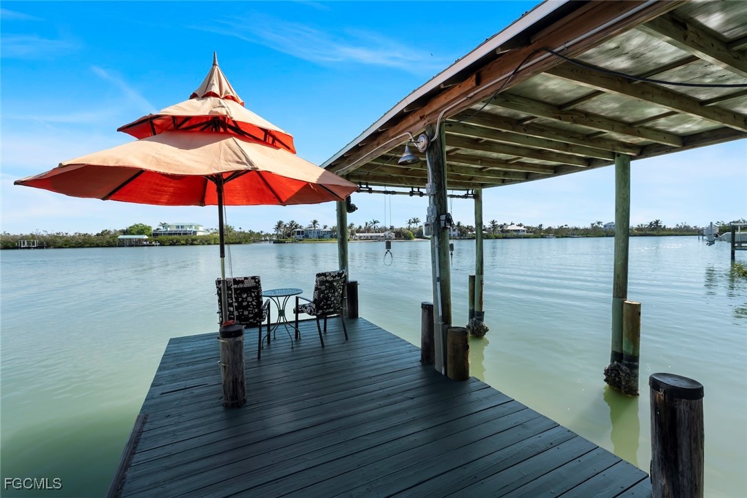 One of the BEST WATERFRONT GULF ACCESS locations on the island. Enjoy stunning long water views of Dinkins Bayou from this property. Dinkins Bayou is a wide body of water teaming with wildlife, there is never a dull day on the dock here. You will have frequent sightings of Dolphins, Manatees, Birds, Fish and more from this island paradise. Set back on a secluded shell road, this island retreat in an extremely private setting, is a special find. The spacious floor plan features 3 Bedrooms, 2 Baths, a beautiful updated kitchen, family room and formal living room. You will want to spend most of your time on the large screened lanai- (330 Square Feet) that opens to the house with what feels like an entire wall of pocket sliding doors- the lanai is under the main roof line so could be additional living space. Boaters and Anglers will enjoy excellent direct access from this location, you can get to bay or gulf in minutes- And EVERYONE will enjoy “Docktail” hour from this expansive dock with one of very few grandfathered boat houses. A truly unique property on Sanibel's West End, a short walk to one of the best shelling beaches in the world. Minutes to Captiva shops and restaurants. Island living at its best. The entire house was modernized in the last 10 years, including a complete re-plumb to move all plumbing into the attic and many things have been replaced in the past 3 years: New Metal Roof on house and boat house 2023, AC 2024 with 10 year warranty, New Ductwork in 2023, New H20 Heater 2024, all New Appliances 2024, New Electrical 2023, all New Lower Cabinets and Bathroom Vanities 2023.