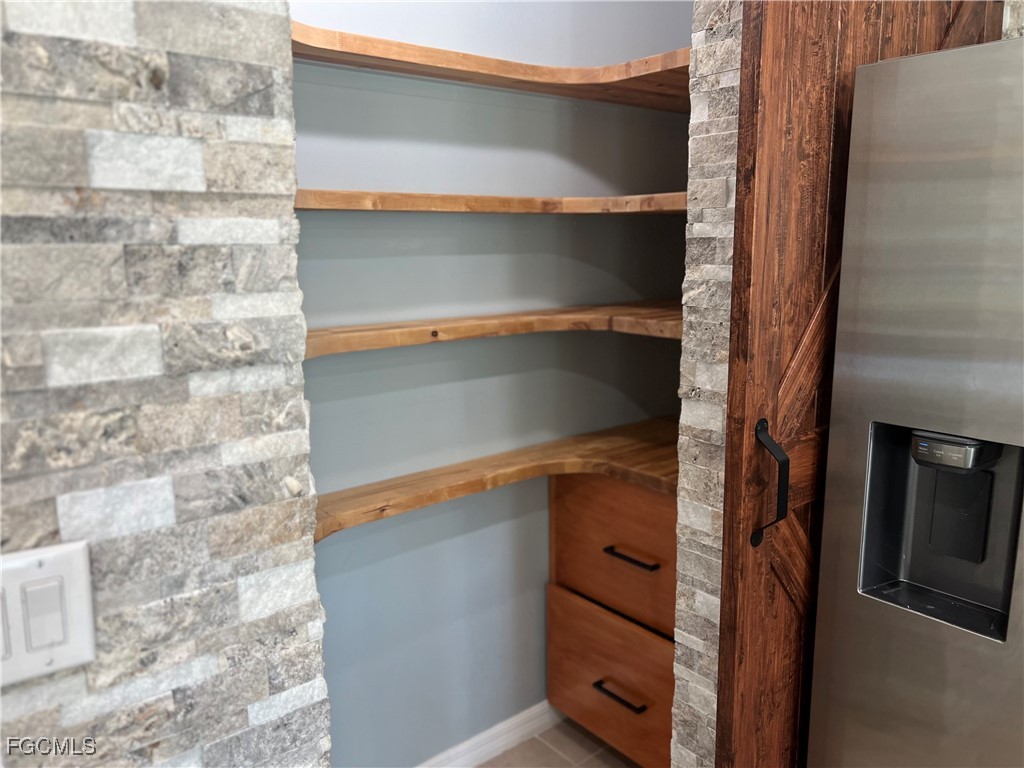 THREE BEDROOM TWO BATH POOL HOME BUILT IN 2019, located in an excellent neighborhood atmosphere of Marble Brook, CENTRAL WATER AND SEWER, sidewalks, secure gated entry, walking distance to common clubhouse with resort style pool, fitness center and playground, Private Pool on the home was built in 2020 with spacious open deck with light grey pavers, electric heat pump for pool, salt water system and Baja deck in pool for sunning, BUILT IN FIREPIT overlooks the FENCED BACKYARD with excellent views of the lake in the backyard as well as plenty of privacy by not having another home in the yard, HEDGES ARE ALLOWED ALONG THE FENCE LINE FOR PRIVACY, pavers in double driveway and walkways, NEWLY REMODELED KITCHEN WITH GRANITE TOPS, breakfast bar, BARNYARD DOOR over pantry with custom built in shelving and drawers, SAMSUNG STAINLESS STEEL KITCHEN APPLIANCES, decorative stone tile wall accents on the kitchen wall, backsplash, under breakfast bar and around entry way, spacious living room with decorative wood accent wall overlooks the pool area, ceramic tile floors throughout with newer LUXURY VINYL FLOORS IN THE BEDROOMS with 5 inch baseboards, CROWN MOLDING, master bedroom located in the rear of the home with pool and lake views, private ensuite master bath with walk in closet, separate water closet, dual sinks and walk in shower, guest bedrooms located in the front of the home with upgraded vanity and fixtures in the guest bath, indoor laundry room with accent wall, built in cabinets and shelving with full size washer/dryer, double garage with auto opener, storm panels for openings, quiet low traffic street. The home is located near schools, Veteran's park and minutes to Downtown Lehigh for shopping etc. yet minutes to I-75, SR 82, Ft Myers and the airport. NO FLOOD INSURANCE REQUIRED HERE. HIGHEST ELEVATION IN LEE COUNTY.