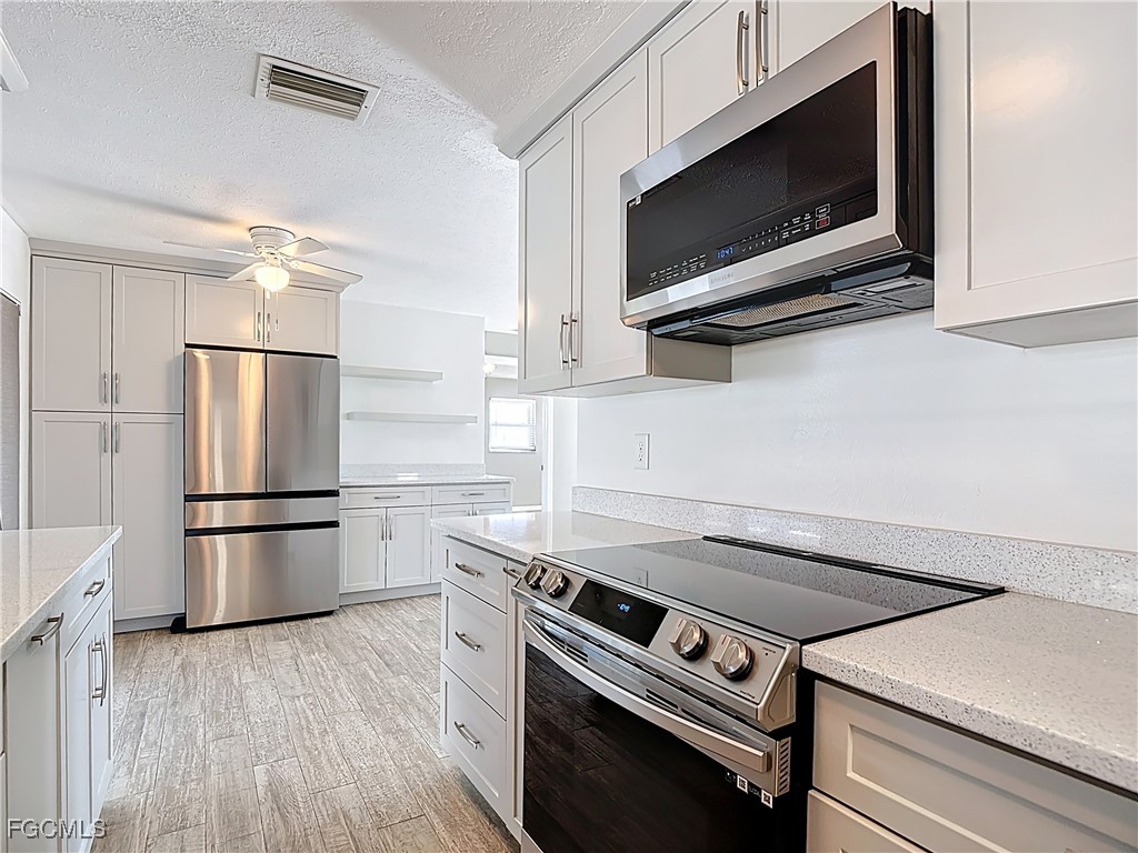 Inside you will find comfortable living spaces ready for your personal touch. The kitchen offers new stainless appliances, New soft light gray kitchen cabinets with soft close drawers, and beautiful quartz countertops. Both bathrooms have been beautifully updated. The home offers two main living areas one with a coffered ceiling. There is ceramic tile throughout the home! Retire to the master bedroom that has a large Jacuzzi tub for relaxing in the evenings. This home is located in a quiet neighborhood close to shopping, dining, and the river for the boating enthusiasts. The home combines comfort, functionality and the true Florida lifestyle. Don't miss this opportunity to make this resort-style property your own!