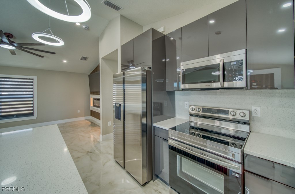 Welcome to your dream home! This stunning single-family home boasts 3 bedrooms, 2 bathrooms, and a 2-car garage, perfect for a growing family or those who love to entertain. The in-ground pool is the perfect place to relax and unwind, while the quartz counters and stainless steel appliances in the kitchen make cooking a breeze. The tile flooring throughout adds a touch of elegance, while the canal view provides a peaceful backdrop to your everyday life. This new construction home features beautiful finishes and personalized closets, ensuring that every detail is tailored to your taste. With impact windows and an open concept layout, this home is not only stylish but also practical and energy-efficient. Located near everything you need, from shopping and dining to schools and parks, this home offers the perfect blend of convenience and luxury. Don't miss out on the opportunity to make this your forever home!