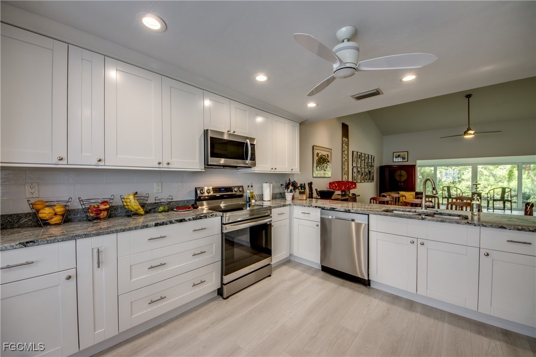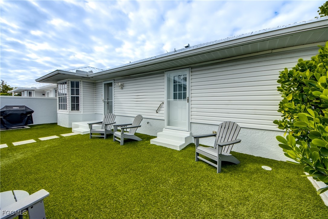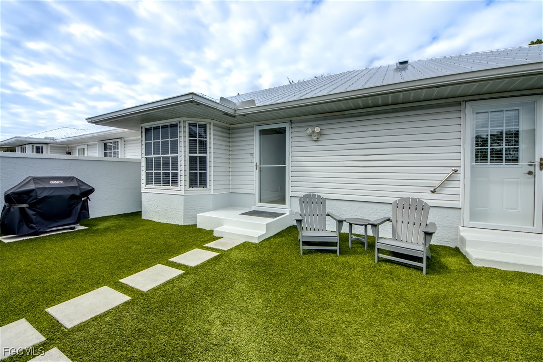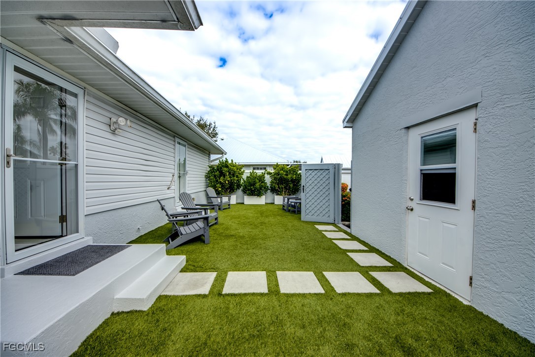 Waterfront Villa on Navigable Waterway to Caloosahatchee. Fully remodled and upgraded. BRAND NEW ROOF!!!!!!Welcome to your new maintenance-free attached villa in The Village at Indian Creek, a charming Old Florida-style enclave nestled within the scenic boating community of Riverbend. This peaceful cul-de-sac community covers 212 natural acres just off Bayshore Road, offering close proximity to I-75 at exit 143 and the vibrant Downtown Fort Myers River and Entertainment District Bedrooms: 3 Bathrooms: 2 Garage: 2-car detached Courtyard: Private enclosed courtyard with astro turf, Adirondack chairs, grill, and planters for outdoor living Interior Highlights: Kitchen: Shaker-style white cabinets, pullout drawers, granite countertops, stainless steel appliances (2022), pantry, and windows with morning sun in the eat-in area Living Area: Fully updated and meticulously maintained with seamless new flooring throughout the entire home Sunroom: NEW HURRICANE RATED floor-to-ceiling sliding glass doors with stunning views of the water and natural preserve $20,000 Main Bedroom: Expansive with 2 windows, sliding door to the sunroom, 2 closets, large vanity with 2 sinks, private water closet, and updated glass shower Additional Bedrooms: Second and third bedrooms offer privacy, with the third bedroom having its own door to the private front patio Laundry Room: Large with recently installed hot water heater, AC, and washer and dryer Lighting: Designer fans and lighting throughout Community Amenities:Pool: Community pool & Boat Docks: Both are just steps from your door Maintenance Fees: Include water, sewer, garbage, grounds maintenance, street lighting, reserves, and pest control Don't miss the opportunity to live in this beautiful villa in one of the best rated communities as a place to feel close to nature yet convenient to all Southwest Florida has to offer.