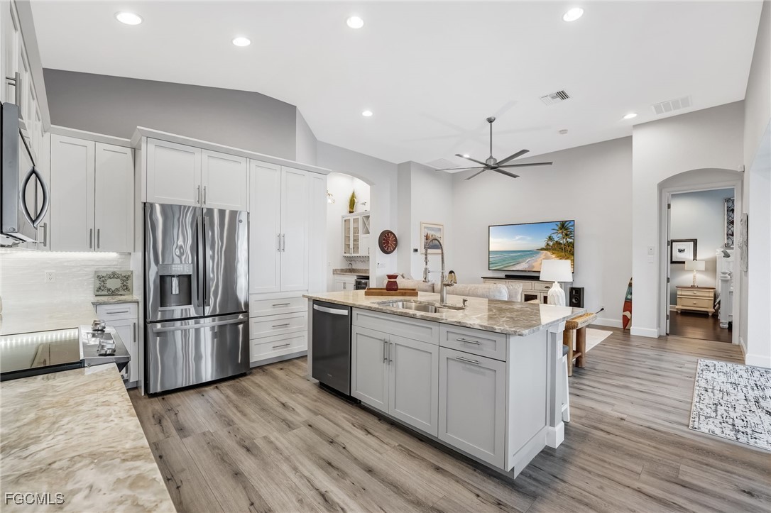 Welcome to Lakeview at Verandah, where resort-style living blends seamlessly with everyday comfort. This beautifully maintained single-family pool home, built by Centex, is perfectly suited for both seasonal retreats and full-time Florida living. Offering 1,994 square feet of thoughtfully designed living space, this one-story ranch-style residence features 3 bedrooms and 3 full bathrooms. High ceilings and elegant 8-foot doors enhance the open, airy feel throughout the home, while a two-car garage provides added convenience and storage. At the heart of the home, the updated kitchen shines with granite countertops, shaker-style cabinetry, stainless steel appliances, and a striking tile backsplash—ideal for entertaining or relaxed daily living. The home is being offered furnished, allowing you to settle in effortlessly and begin enjoying the Florida lifestyle from day one. Additional highlights include a zero-carpet interior, plantation shutters, and an in-house laundry room, combining style with practicality. Major updates such as a new roof (2020) and hot water heater (2022) provide peace of mind. The true showpiece of this home is the outdoor living space. Step onto the western-exposure lanai and take in breathtaking water views and unforgettable sunset skies. The entire pool and spa area has been completely updated and resurfaced, creating a stunning, modern outdoor oasis. A picture-frame lanai screen beautifully frames the water views while keeping sightlines clean and unobstructed. A hurricane storm shade adds both security and comfort, making this outdoor space as functional as it is impressive. This move-in-ready home offers an exceptional opportunity to enjoy the best of Verandah living—where lifestyle, location, and value come together beautifully.