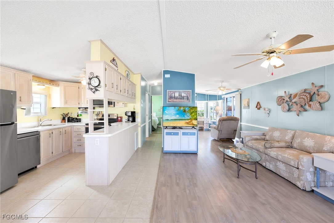 Discover this beautiful waterfront home filled with natural light and breathtaking views! Located in a highly desirable 55+ community just off 41 and Alico Rd, this meticulously maintained 1-bedroom, 1.5-bathroom residence is perfect for relaxed living and is being sold TURNKEY(FULLY FURNISHED). Just bring your toothbrush and luggage!!! The home boasts vinyl plank and tile flooring throughout, creating a seamless flow. You'll love the modern kitchen, which opens to the spacious living room, complete with newer stainless steel appliances for your culinary adventures. Enjoy the convenience of indoor laundry and a new air conditioning unit installed in December 2025. Additional highlights include a metal roof and newer windows, ensuring durability and energy efficiency. This home is in excellent condition and is being sold turnkey, making your transition effortless! Don’t miss your chance to own this gem in a fantastic community! As part of Granada Lakes, you’ll enjoy an active senior lifestyle with community gatherings, social events, clubhouse access for gatherings, and a huge heated sparkling pool overlooking the many surrounding lakes that are accessible for fishing or small boating. The community is located just minutes from beaches, golf courses, kayaking, shopping, dining, and Interstate 75. This home offers the perfect balance of peaceful seclusion and vibrant community living. With an incredibly low HOA fee of just $108.33 per month, covering water, sewer, and lawn maintenance, this home provides affordable, maintenance-free lakeside living. What else could you ask for? This move-in ready home is designed for rest, relaxation, and socializing. There is also a storage area at the back of the community for additional parking, boat and rv storage. Reach out for your private showing today or to learn more about this fantastic opportunity.