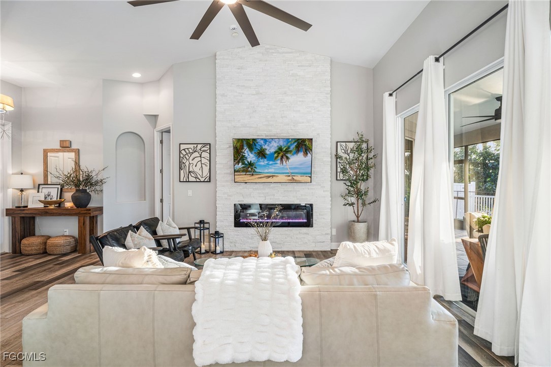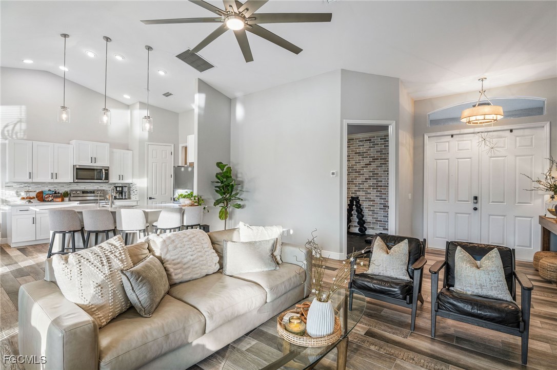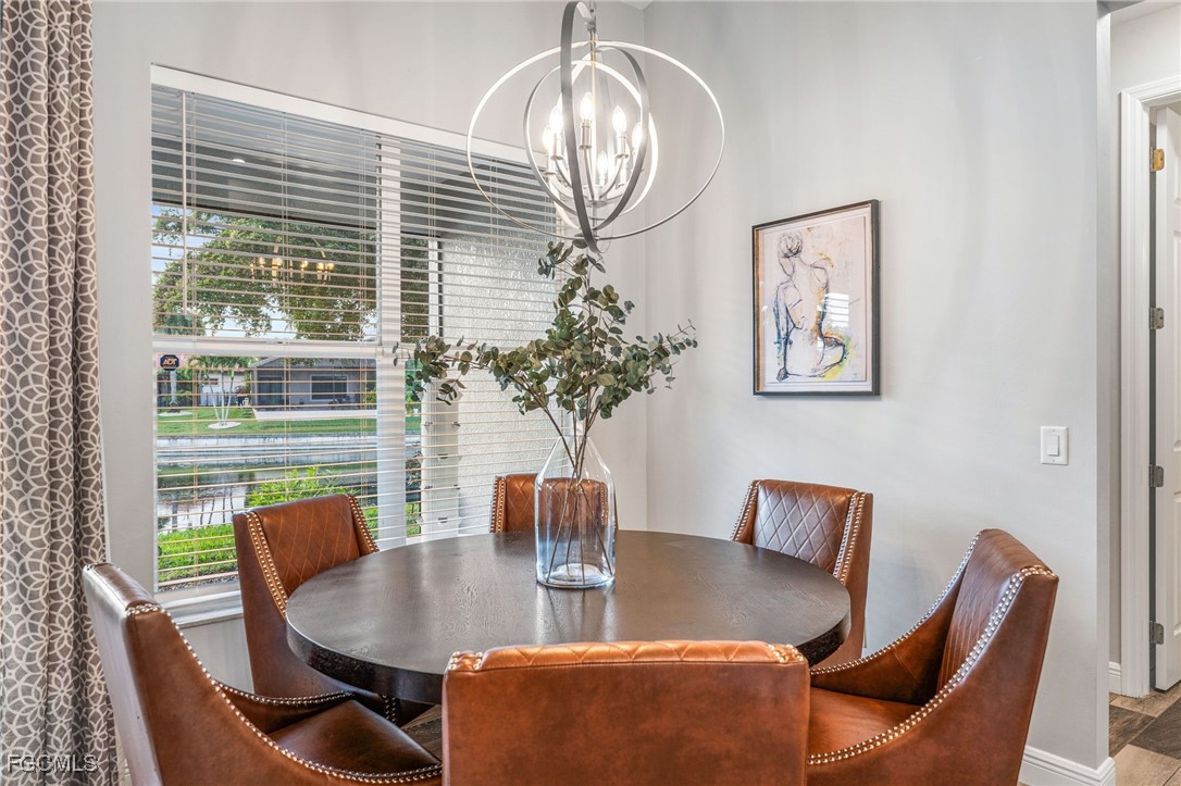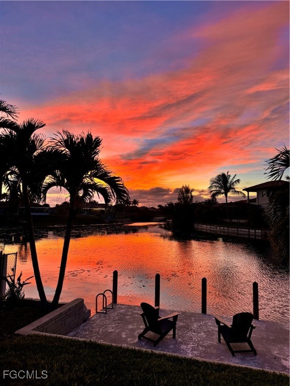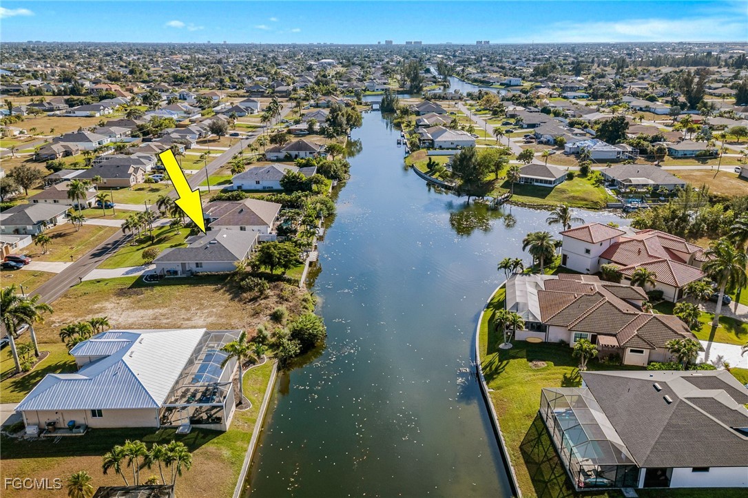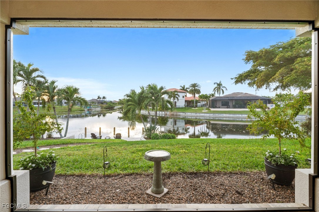 BREATHTAKING SUNSETS!!! Enjoy the most beautiful sunset views over an intersecting canal with coveted western exposure from this elegantly updated Cape Coral Freshwater Canal home. This residence offers three bedrooms plus a den (which is currently used as a gym), two bathrooms, and 1,754 square feet of thoughtfully designed living space. The open floor plan features soaring ceilings, plank tile flooring throughout, quartz countertops, stainless steel appliances, and new wood cabinetry, all complemented by abundant natural light from three sets of sliding glass doors. The oversized primary suite provides ample space for a reading nook and is enhanced by elegant crown molding, which continues throughout every bedroom. Step outside to the expansive screened lanai with picture screens, creating an unobstructed waterfront view, along with a convenient storage room and wiring in place for a future hot tub. Lush landscaping adds to the home’s privacy and curb appeal. Additional features include Kevlar hurricane shutters for the entire home, an under the sink APEC 7-stage water filtration system with UV light for drinking water, a NEW ROOF installed in 2022, and a NEW HOT WATER HEATER 2022. Best of all, this home has NEVER FLOODED AND IS NOT IN A FLOOD ZONE. A rare combination of updates, peace of mind, and spectacular waterfront living—this home is truly move-in ready. This home is on City water and Sewer with a very small assessment balance left that will be paid off by the Seller at closing.