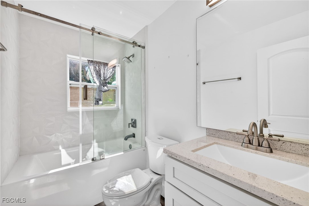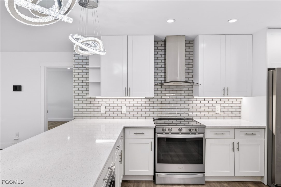 This 3-bedroom, 2-bath residence showcases a thoughtfully designed split floor plan with bright, open living spaces and clean modern finishes throughout. The interior is filled with natural light and features wide-plank flooring, recessed lighting, modern ceiling fans, and an inviting open-concept layout ideal for everyday living or entertaining. The updated kitchen serves as the heart of the home, highlighted by sleek white cabinetry, quartz-style countertops, a stylish tile backsplash, stainless steel appliances, and a large peninsula with bar seating, perfect for hosting or casual dining.
