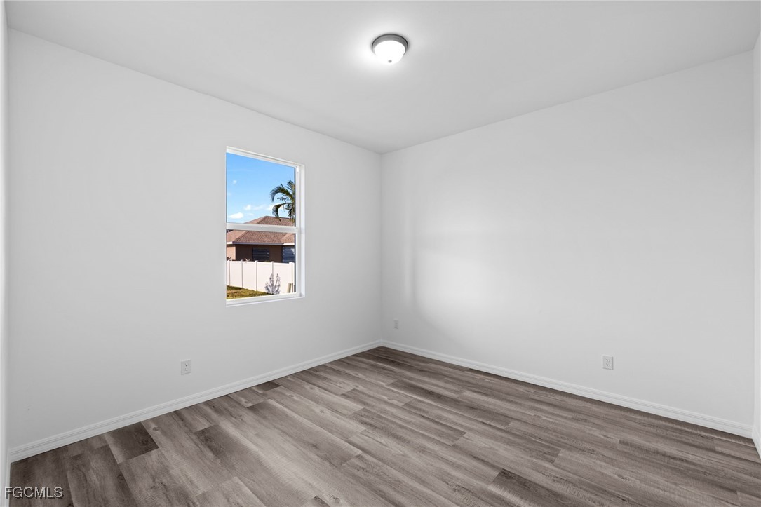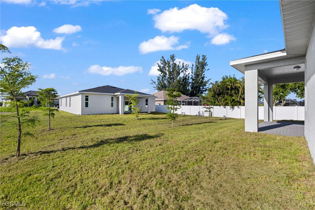 Luxurious newer construction home with room for a pool and then some! 4 Bedrooms, 2 Full Bathrooms, and a 2 Car Garage. This home is thoughtfully designed and built with close attention paid to every detail. The open floor plan blends indoor & outdoor living and the large lanai is begging to be accompanied by a pool. The living area is expansive with high volume ceilings and a separate den like area that can be used as a family room, home office, formal dining area, or any other purpose that suits you. The kitchen is outfitted with gorgeous solid wood soft close cabinetry and quartz countertops, a large counter height island and a beautiful stainless steel appliance package. The master suite welcomes you through an 8' door (which are also found throughout the home), with tray ceiling and large separate walk in closets and a master bath with walk-in shower, His & Her Sinks and a private commode. The guest bedrooms are large with tall ceilings and ample closet space. Large corner lot with room for a pool. THis home is close to all Cape Coral has to offer!