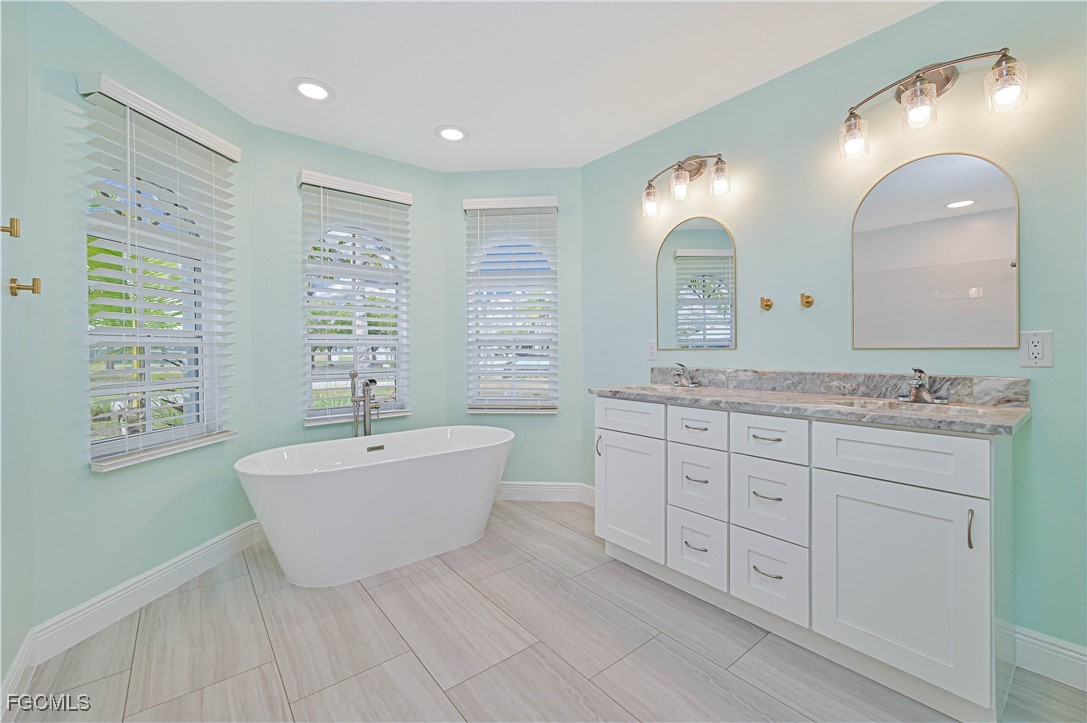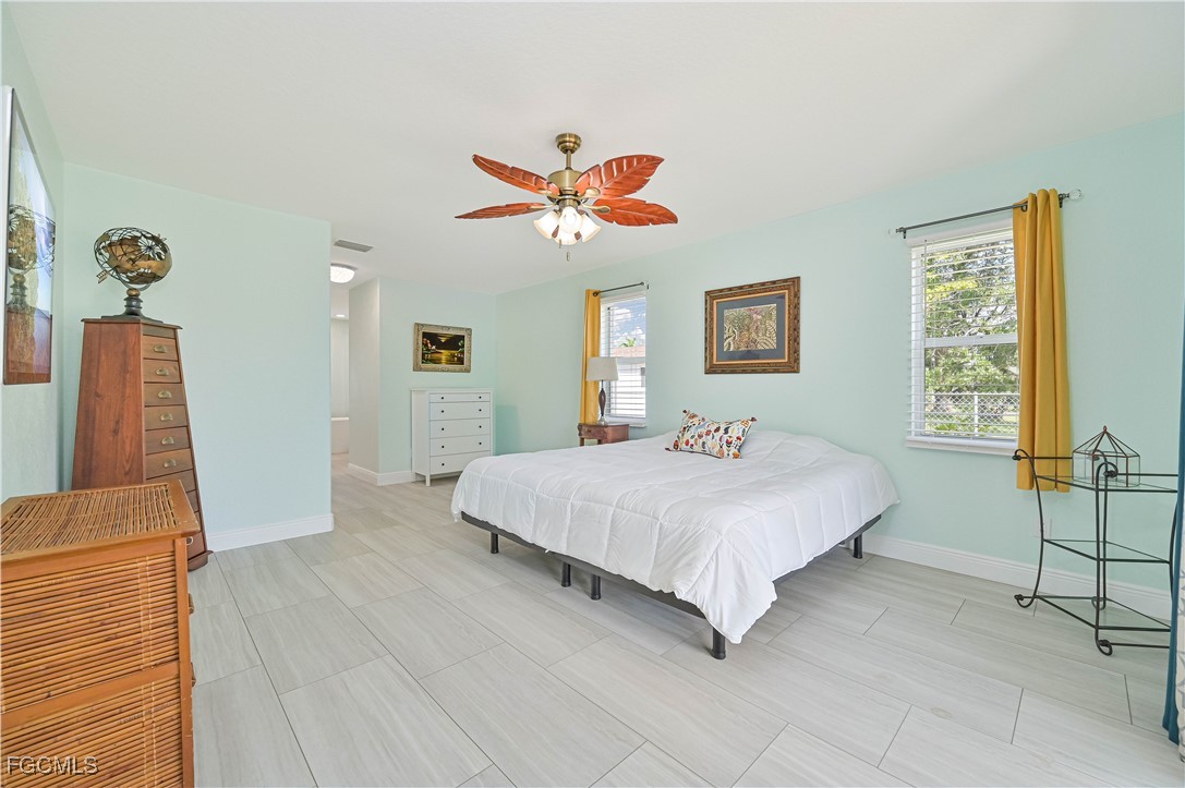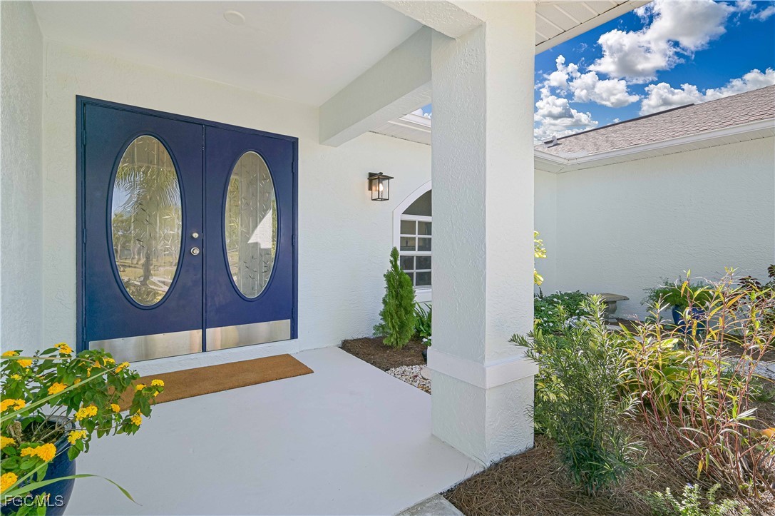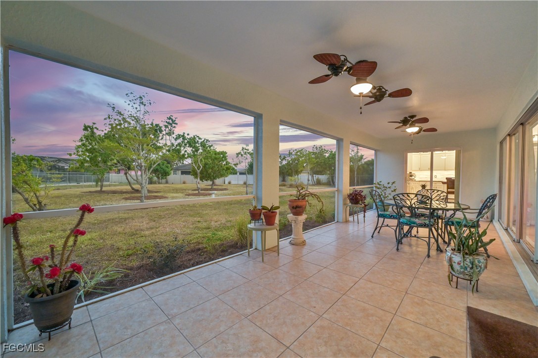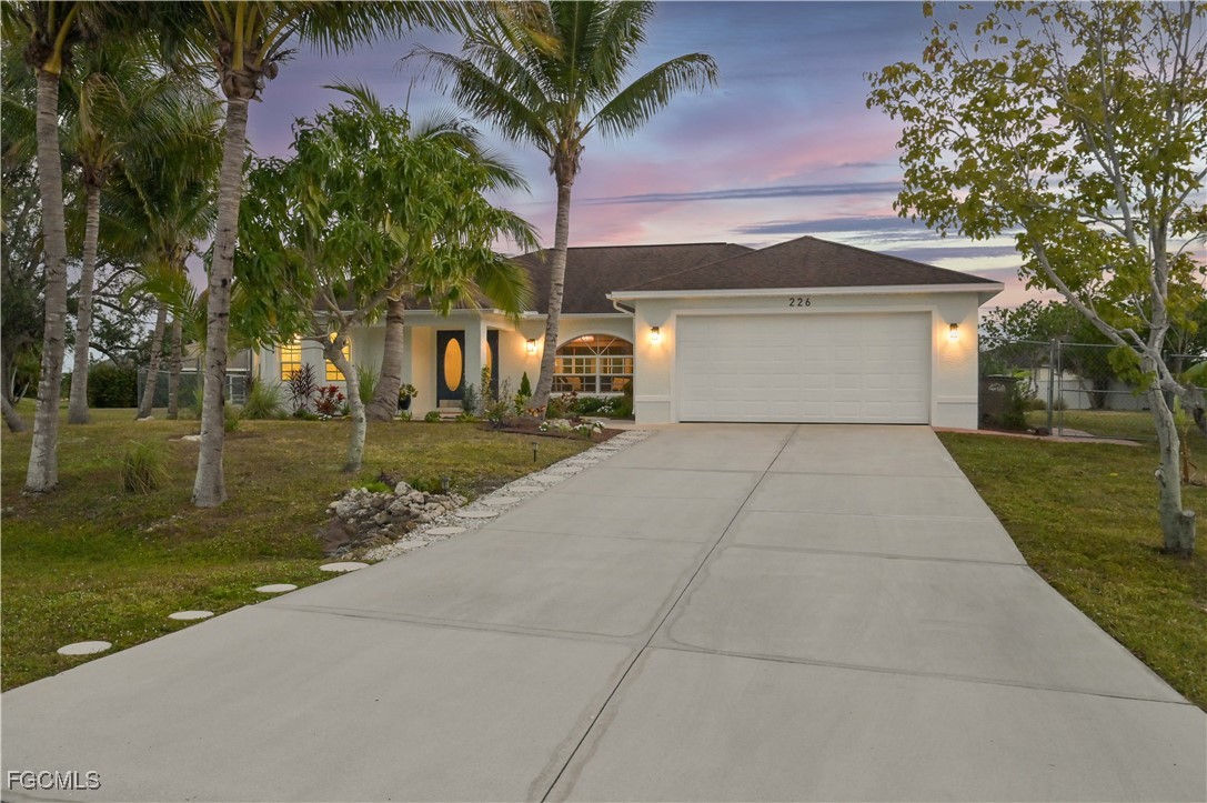 Welcome home to this stunning, fully remodeled 3 bedroom, 2 bath home situated on a truly one-of-a-kind, oversized half acre lot in the heart of sunny SW Cape Coral. This unique property offers space, tranquility, and lush tropical surroundings rarely found in the area. Tall, soaring ceilings create an open and airy atmosphere, filling the home with natural light and enhancing the modern, spacious feel throughout. Thoughtfully updated from top to bottom, the home features a desirable split bedroom floor plan and contemporary finishes with a move-in-ready design that’s perfect for both everyday living and entertaining. The open layout flows seamlessly between the living, dining, and kitchen areas. The large kitchen offers ample counter space and storage, soft-close cabinets and drawers, and a picture window with panoramic views of over a dozen mature mango trees, along with coconut palms, banana plants, and an orange tree that create a true backyard oasis. Massive sliding pocket doors open fully to the screened lanai, effortlessly extending the living space and creating the ideal indoor-outdoor lifestyle. The backyard is expansive, fully fenced, and exceptionally private, offering endless possibilities for entertaining, pets, play, or a future pool. Both bathrooms feature dual vanity sinks. The primary suite is a true retreat, complete with sliding pocket doors to the lanai, a large soaking tub, and a spacious tiled shower. Additional highlights include a separate laundry room off the garage with an oversized washer and dryer, a new hot water heater, no HOA and NO flood insurance required. Located across from Koza Park and just minutes from shopping, dining, and everyday conveniences, this home offers an exceptional blend of location, lifestyle, and quality. This is a special property that must be seen to be fully appreciated. Schedule your private showing today!
