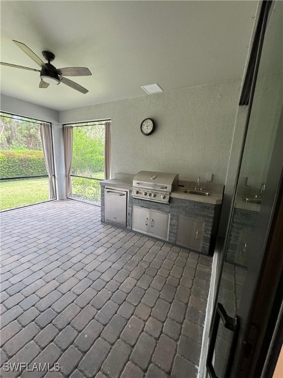 Ventana Point Development is exclusive enclave of 77 homes. Gated with low HOA fees. Natural gas is one of the upscale details in this community. Residents also have access to a private upscale pool and cabana. This home has an open concept with 3 Bedrooms and a den/office ( or 4th bedroom) and 3 baths! Primary Bedroom has it's own oasis of a bath with walk in large shower, double vanity and huge walk in closet. A private ensuite for your guests, a 3rd bedroom with hall bath and a study/office close by. Recessed lighting in all the rooms. Custom woodwork, trim, paint and curtains throughout! The open concept makes great for entertaining. A 90 degree sliding glass doors open to a spacious lanai with it's own built in kitchen, with it's own large grille with rotisserie, refrigerator, and sink is a must see! The yard is large enough for a pool/spa if desired. Just miles from Gulf beaches, plus minutes from premier shopping and dining.