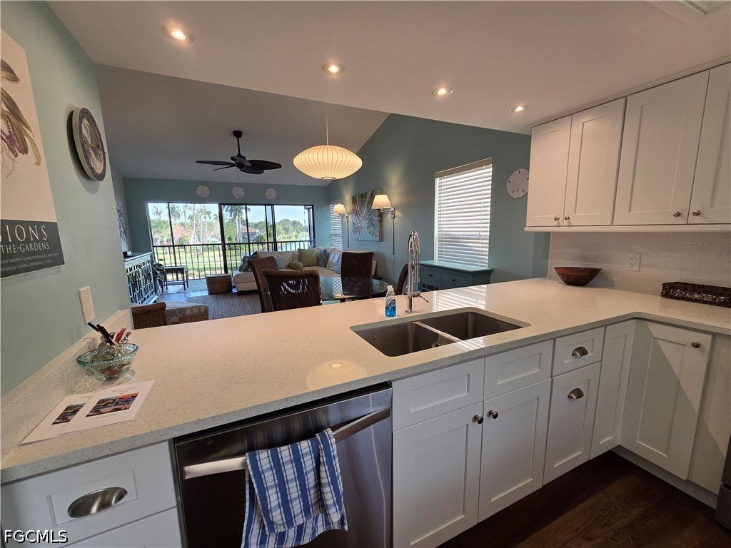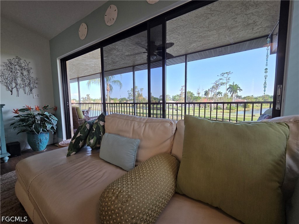 Welcome to Paradise and this Breathtaking View! It's panoramic view of the golf course and lake with beautiful water feature allows you to enjoy the Sunrise and the Sunset. The tiled lanai runs the entire length of the condo and you can enter from the living room, and both bedrooms. This second floor end unit gives you extra windows to let in extra light. This large two bedroom 2 bath features wood like flooring, an open floor plan, light colors, and lots of windows and sliding doors that run the length of each rooms lets you enjoy the beauty that surrounds you. The wonderful birds and other wildlife will perform shows for you each day. You could not find a better vacation spot and you will see why more and more people are falling in love with Florida. You will appreciate the warm weather, the warmth of the people here and the amazing beauty that nature provides. We all deserve a Little Piece of Paradise and you have found yours. The community is located in South Fort Myers with easy access to Interstate 75, the airport, Red Sox and Twins Stadiums, shopping, dining and FGCU and FSW colleges. Available beginning December 16, 2022. Call for more information or to see.
