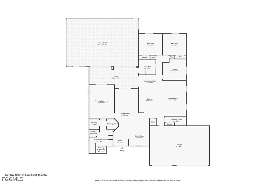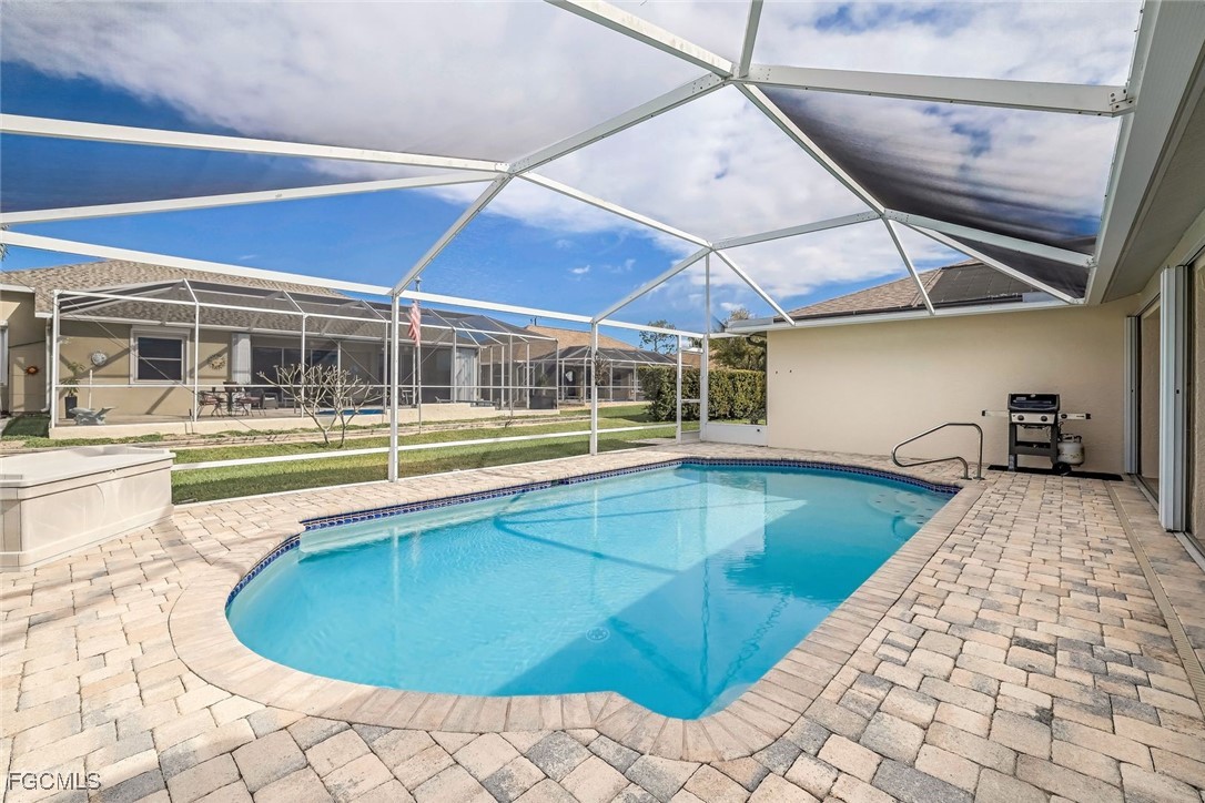 Beautiful Cape Coral 3 car garage pool home, priced to sell! Located adjacent to the beautiful Coral Oaks Championship Golf Course and easy access to the Cape Coral Bicycle Trail on Van Buran Pkwy. Location provides easy access to Gulf Access boat ramps! Home has many updates & unique features including large 3 lot property size, a master bath sauna & large walk-in shower, new roof 2022, new interior & exterior paint, new quartz countertops in kitchen & master bath, new marble pool bath double sink vanity. Property has easy to use accordion shutters on all windows & lanai. All new kitchen appliances convey, includes new refrigerator, microwave, range with air fryer oven 2025. Whole house R/O with contract that conveys. The beautiful, tiled lanai area with pool pavers has a screened cage. Pool is heated by either solar and/or electric heat pump, supported by an energy efficient variable speed pool pump. The front entrance is screened in so front double doors can be opened to enjoy the Florida coastal breezes! There is an attached dry storage area in back for garden & lawn equipment and a programmable sprinkler system for the beautiful lawn with palm trees on this extra-large 3 lots property. The 4th bedroom is currently being used as an office. Schedule your showing today for your new dream home!