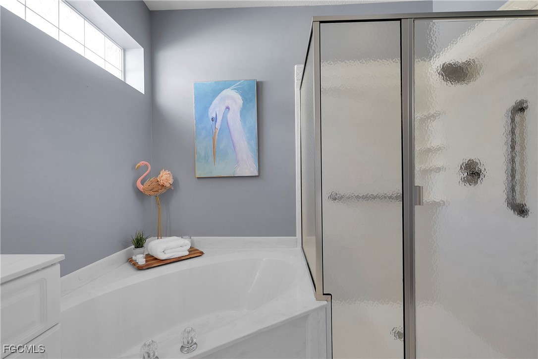 Your Florida Country Club Lifestyle Starts Here! The highly sought-after Herons Glen Country Club is calling. This beautifully updated Osprey model offers the rare combination of a wide lake AND golf course view overlooking a prime green, all situated on a deep backyard with ample room to easily add a custom pool. This North Fort Myers gated golf community is the ultimate destination for seasonal buyers and golfers seeking an amenity-rich environment. Forget the stress of maintenance! This home is move-in ready and features a New 2025 Hot Water Heater, 2023 A/C system, 2023 Wi-Fi-capable stainless steel kitchen appliances, and a front-load GE black washer/dryer set on pedestals. The exterior was freshly painted in 2025, and hurricane shutters for enhanced peace of mind. The redesigned kitchen is the stunning centerpiece, finished with luxurious Dolomite marble countertops (perimeter and single-level peninsula), a deep stainless sink, soft-close doors/drawers, and elegant gold hardware. The light, modern interior features premium finishes like tile and wide-plank LVP flooring throughout, upgraded lighting, and fresh paint. The bright eat-in area and the spacious great room both feature large sliding doors, leading to the screened lanai. The dramatic quadruple sliding door perfectly frames the peaceful water, golf, and wildlife views. Coolaroo shades ensure comfortable lounging on the lanai as you take in the stunning scenery. The primary suite is a true retreat, ensuite with granite countertops, dual sink, soaker tub, shower, and walk-in closet. The comfortable guest bedroom and full bath accommodate visitors. The versatile den with double doors is perfect for a home office, hobby space, or overflow guest room. The oversized garage easily accommodates two cars plus your essential golf cart. Herons Glen Golf & Country Club offers championship golf, resort-style pool, fitness center, tennis, pickleball courts, clubhouse dining, and endless social activities. Don't miss this opportunity to secure your perfect seasonal or relocation home near Fort Myers!