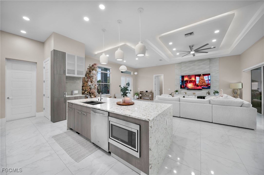 This stunning contemporary residence redefines modern luxury living in Cape Coral, delivering an exceptional blend of architectural elegance, comfort, and lifestyle appeal designed for today’s discerning buyer. From the moment you arrive, the home commands attention with its clean lines, refined design, and undeniable presence. Inside, expansive open-concept living spaces create a seamless flow ideal for both elevated entertaining and everyday living, filled with natural light and a sense of effortless sophistication. The designer kitchen serves as the centerpiece of the home, thoughtfully crafted to balance modern aesthetics with functionality, making it perfect for hosting, gathering, and creating memorable moments. The primary suite is a private retreat inspired by spa-like luxury, offering a tranquil escape with premium finishes and an atmosphere of relaxation and refinement. Additional bedrooms provide versatility and comfort, ideal for family, guests, or a customized home office. Step outdoors and experience your own private oasis—an inviting space designed to embrace the Florida lifestyle, perfect for entertaining, unwinding, or enjoying peaceful moments under the sun. Solid concrete block construction, meticulous care, and pride of ownership are evident throughout. With no HOA and no restrictions, this property offers complete freedom and flexibility, a rare and valuable advantage. Conveniently located near top-rated schools, dining, shopping, and major roadways, this home delivers the perfect balance of privacy and accessibility. An exceptional opportunity to own a residence that offers luxury, lifestyle, and long-term value in one of Cape Coral’s most desirable areas.