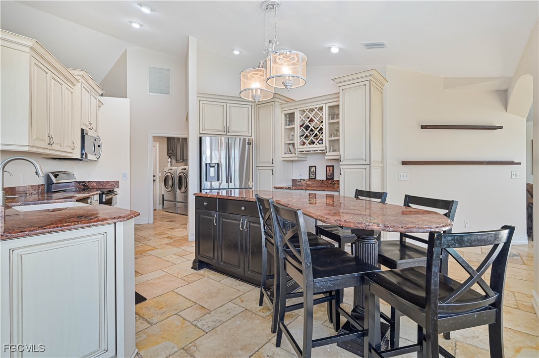 DIRECT Gulf access with no bridges from this beautifully maintained SE Cape Coral waterfront home on a private corner lot. Offering 3 bedrooms + a home office/den, 2 baths, this split floor plan features tile flooring, vaulted ceilings, and updates throughout. Enjoy true Florida living on the screened lanai with a heated saltwater pool - perfect for year-round entertaining. Storm-ready with electric/manual shutters, a fenced yard, and city water & sewer with assessments paid. Boaters will love the quick, easy access and canopied wrap-around dock/lift setup with electric and water available at the dock. Schedule your private showing today!