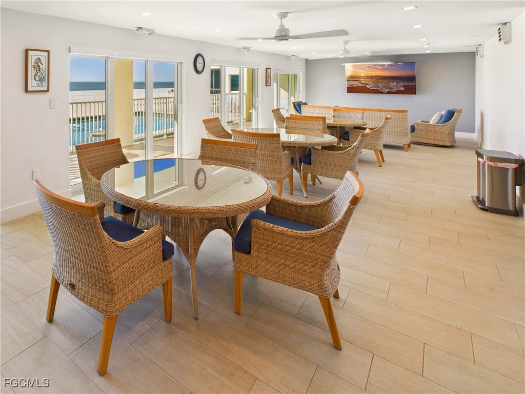 Residents enjoy resort-style amenities including a pool, spa, clubhouse, community room with beach access, BBQ area, and shuffleboard, all within a true beachfront setting with direct Gulf access. No pets and no smoking are permitted.