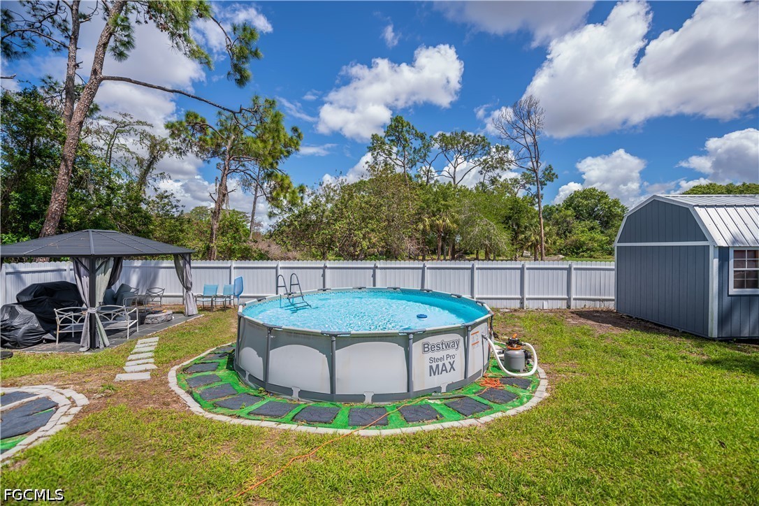 Welcome to this well-maintained 3 bedroom/ 2 bath home situated on a .23 acre lot, which backs up to a picturesque greenspace (always a plus) in Port LaBelle. The home exudes functionality and comfort and features numerous upgrades including vaulted ceilings, a covered entryway, and tile flooring throughout for easy maintenance and a clean, modern feel. The kitchen, equipped with stainless steel appliances, a sturdy breakfast bar and ample counter and cabinet space, adjoins the living room and the designated dining area. The home's spacious master bedroom features a luxurious ensuite with a dual-sink vanity and a beautifully updated walk-in shower. The guest bedrooms share a well-appointed bathroom, and it should be noted that both bathrooms include updated bidets for added comfort. The convenient laundry room, which can be accessed from both the kitchen and the 2-car garage, boasts a Samsung washer/dryer combo which conveys with the sale. Window fixtures throughout will remain. The fully-fenced backyard features a gazebo and an above ground pool - welcome additions to any Florida home. A large shed provides additional storage for pool and/or lawn equipment. Additional highlights include an EV charging station with approximately 7 years remaining on a transferable structural warranty for added peace of mind. This home offers exceptional value with many upgrades and flexible options for expansion. BONUS: The adjoining .33 acre lot is available for purchase which, if added, would immediately elevate this beautiful home and yard into a highly desirable 1/2 acre corner site ensuring even more privacy for the homeowners. Also, 100% financing options may be available - call today for more information.