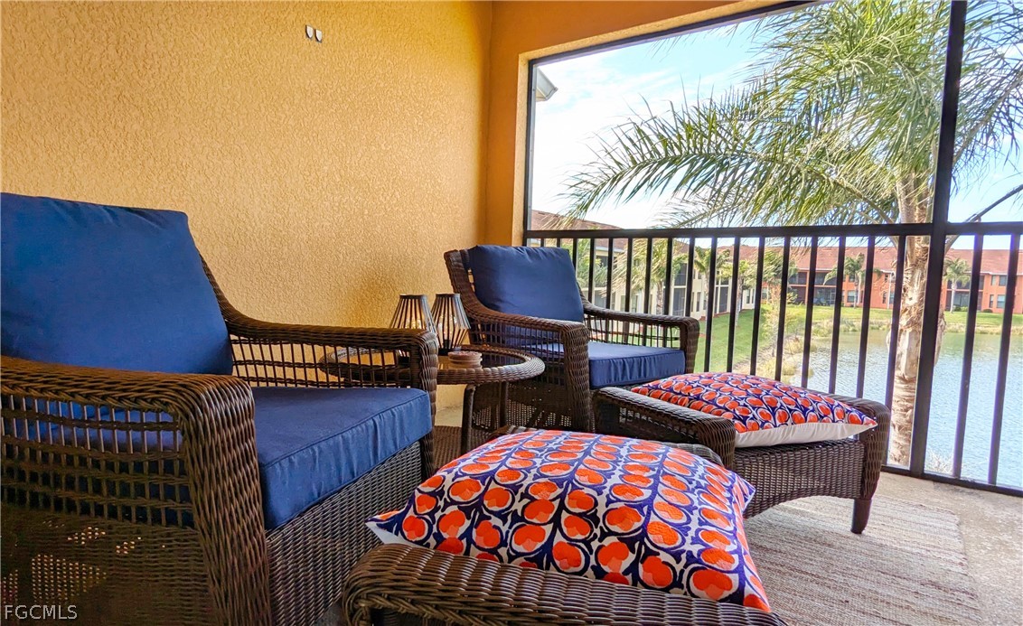 Impeccable LAKE FRONT Unit comes turnkey FURNISHED! Top floor! Two BALCONIES! Enjoy beautiful SUNSETS on your back patio or your favorite morning drink on the front screened in patio. Unit comes with an enclosed detached GARAGE, HIGH IMPACT windows and sliders gives you a peace of mind when leaving.