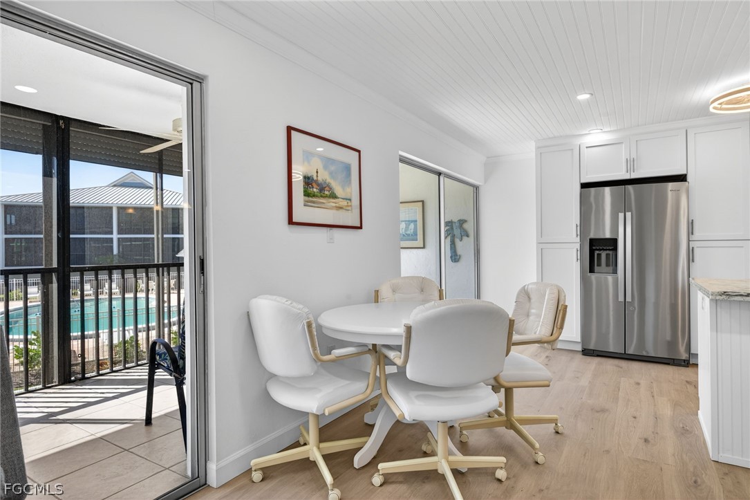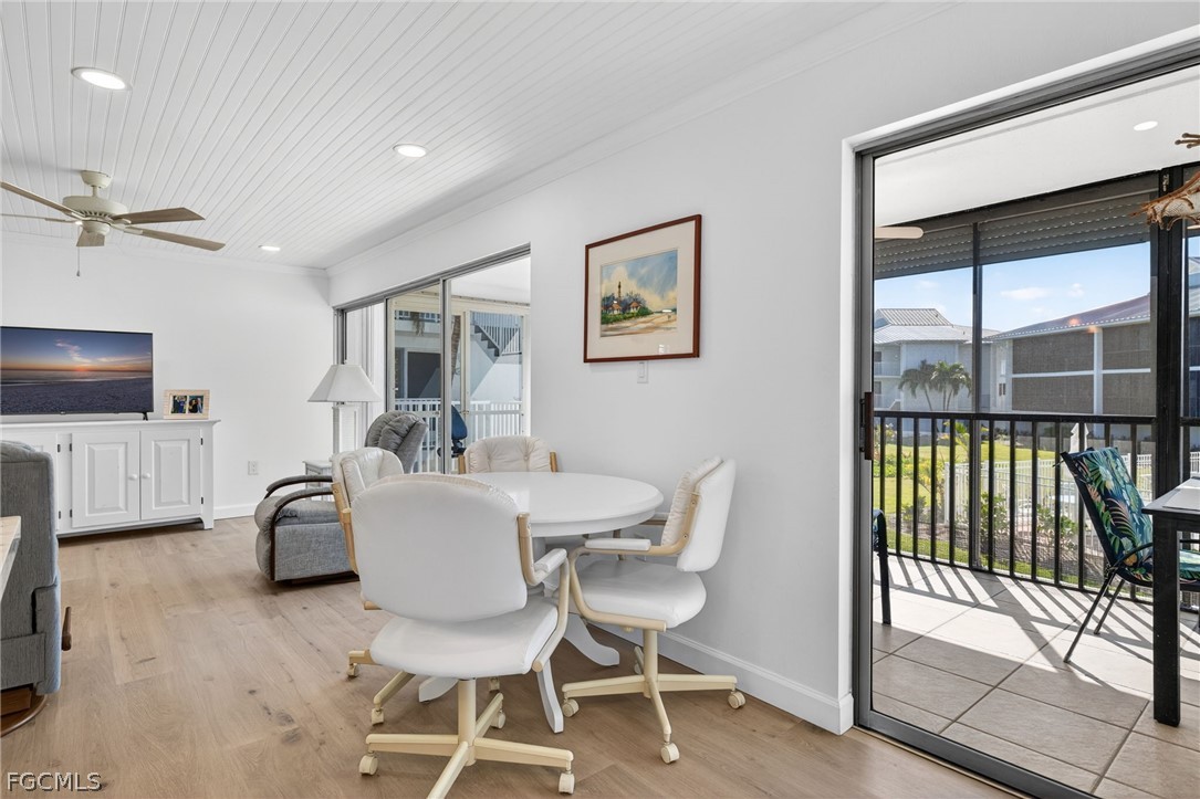 This impeccably remodeled two-bedroom, two bath residence offers a refined coastal interior with a focus on light, space, and effortless island living. The open concept living and dining areas are filled with natural light and finished with wide plank flooring, smooth ceilings, and thoughtfully placed recessed lighting, creating a clean and sophisticated atmosphere throughout.