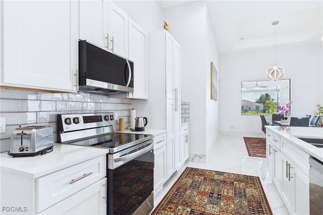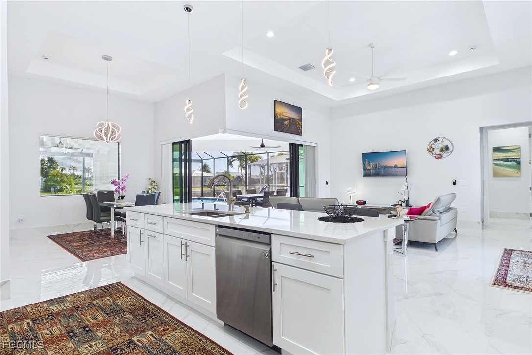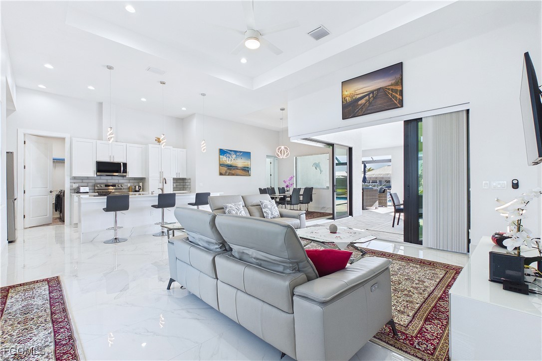 This is true Florida living!!! Beautiful Custom Built, Gulf Access Home In SW Cape Coral! Home features open floor plan, 3 Bedrooms, 3 Full Bathrooms, 3 Car Garage, Heated Saltwater Pool , Very spacious kitchen with Quartz Countertops, Stainless steel appliances, Tile flooring throughout with 18" floor tiles and TILE baseboards 90 degree sliders open up to pool.