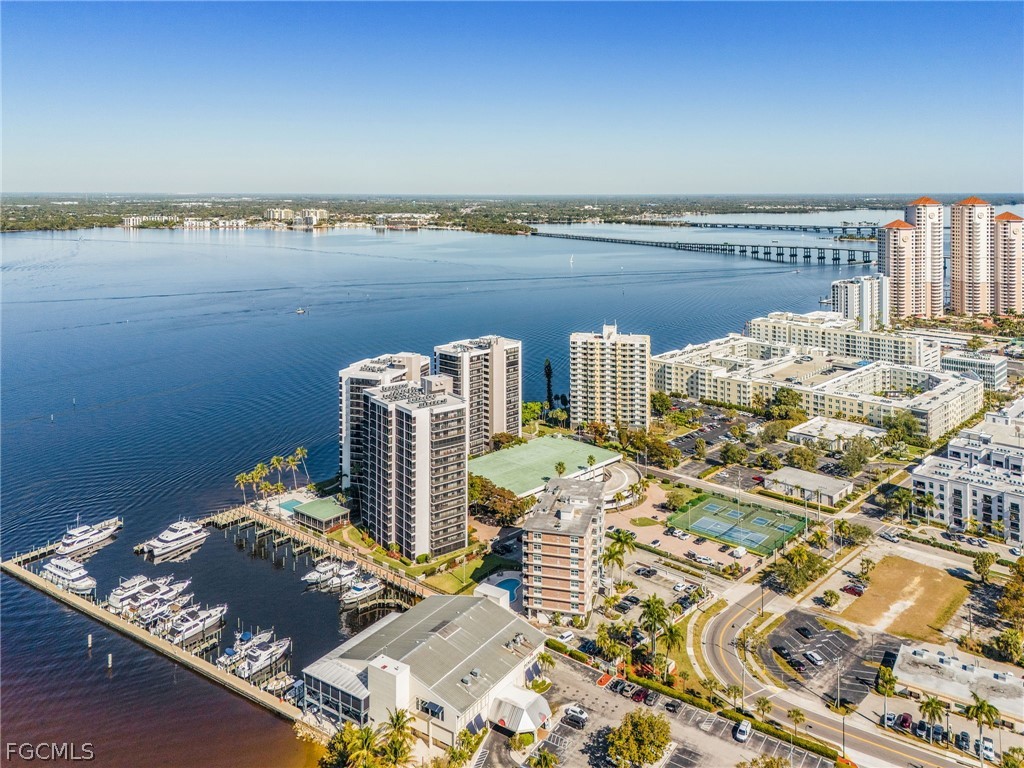 Experience refined RIVERFRONT living in this RARE CORNER 7TH FLOOR residence offering 3 bedrooms and 2 baths with SWEEPING western exposure views over the CALOOSAHATCHEE RIVER. This ELEGANT condominium is enhanced by GORGEOUS OVERSIZED NEUTRAL TILE FLOORS, brand-new IMPACT WINDOWS AND SLIDING GLASS DOOR, complemented by ELECTRIC hurricane shutters for effortless storm protection and peace of mind. The primary bathroom has been recently remodeled. Tankless water heater added 5 mths ago. The EXPANSIVE screened lanai invites you to unwind while overlooking the heated riverfront POOL, enhanced by new pavers, marina, and SPECTACULAR sunset skies. The building has recently UPDATED the carpeting and interior paint. Ideally situated within WALKING distance to Historic Downtown Fort Myers and the Edison & Ford Winter Estates. The DOWNTOWN TROLLEY stop is right across the street! This EXCEPTIONAL home offers a sophisticated lifestyle with PREMIER dining, culture, shopping and waterfront ambiance just steps away. A truly rare opportunity to own a luxury corner riverfront condo in one of Fort Myers’ most coveted locations.