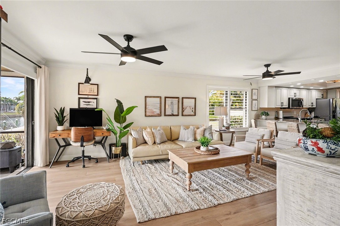 This 2-bedroom, 2-bathroom corner unit presents a smart opportunity for buyers seeking waterfront living with direct access to the gulf. As an end unit along a 380-foot captain's walk with southern exposure, this home is ideal for boating enthusiasts eager to reach open waters without the hassle of bridges. The property comes mostly furnished, simplifying the transition to your new home.