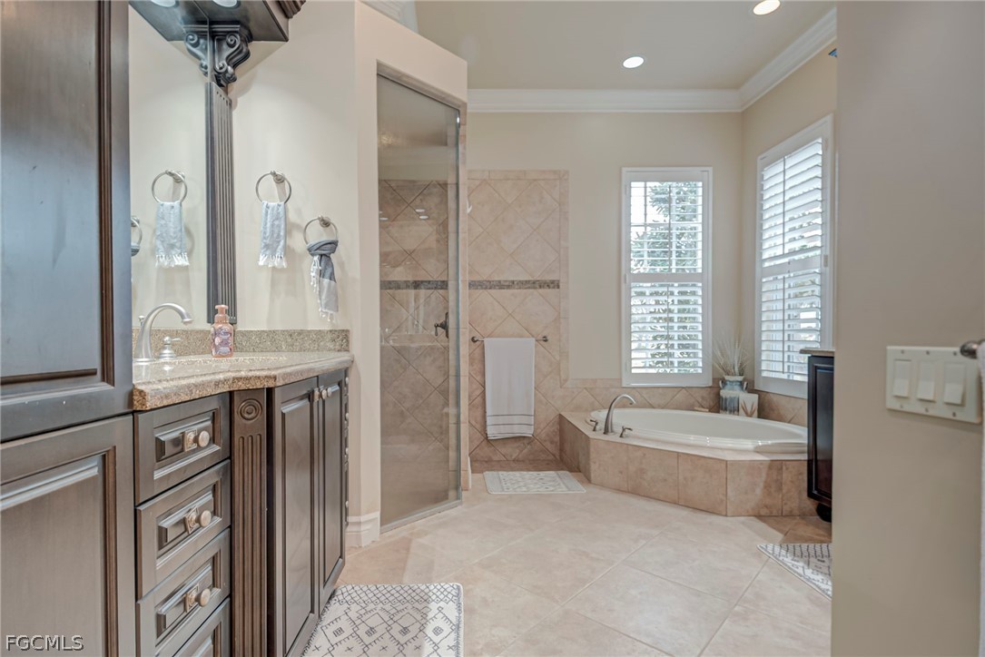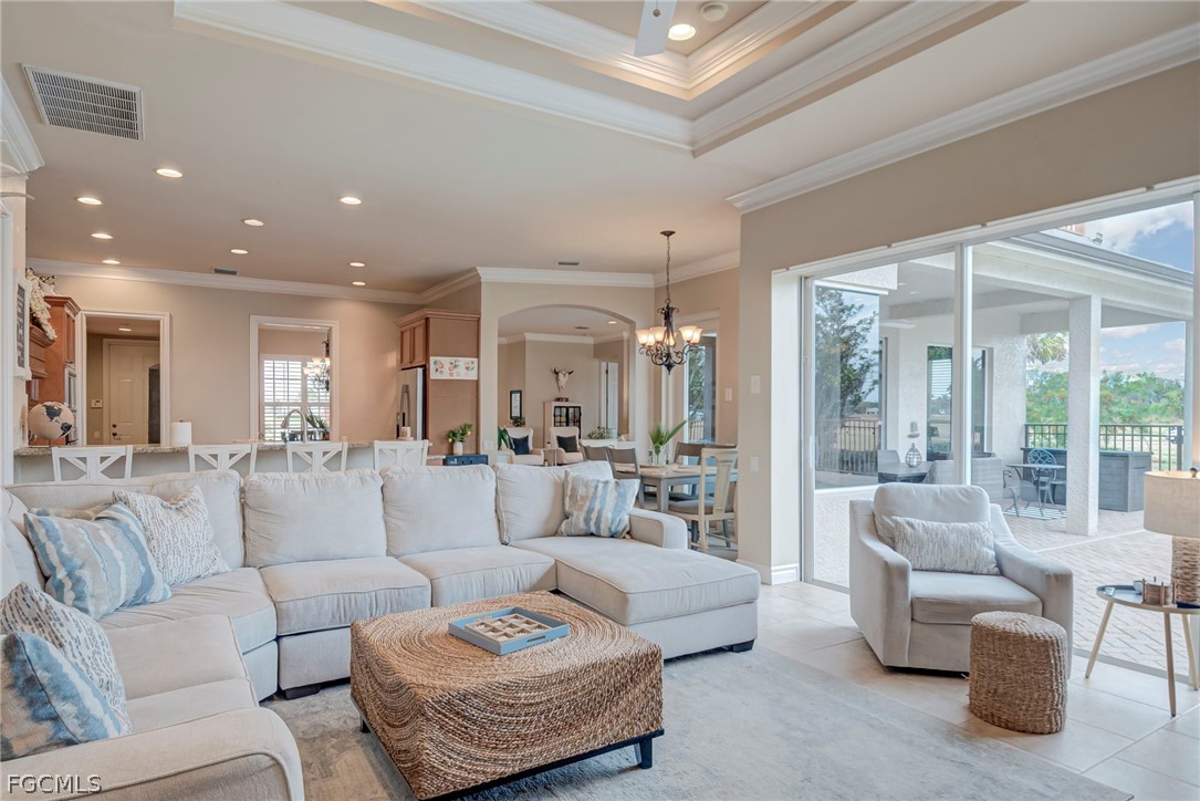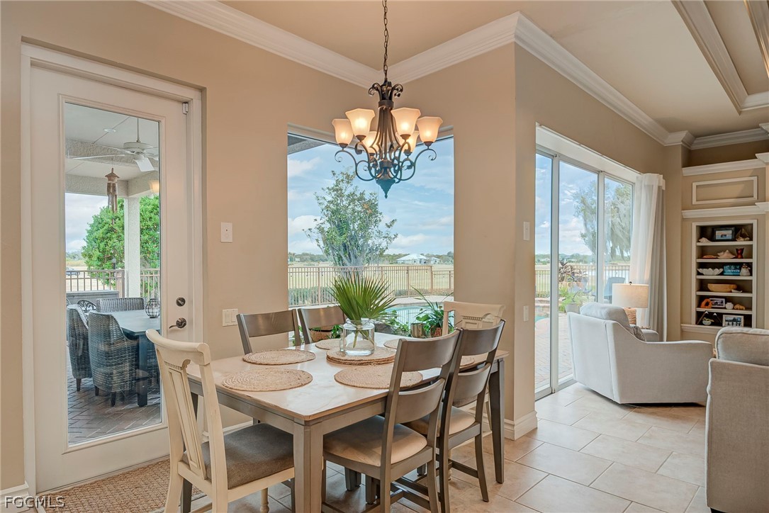 An inviting front porch and grand double-door entry welcome you into a spacious open floor plan filled with natural light and warm, neutral tones. Designed for both entertaining and everyday living, the home features tile flooring, trey ceilings, crown molding and Plantation shutters. Large den/office with french doors, formal dining room, and a generous living area leads you to the gourmet kitchen featuring granite countertops, custom wood cabinetry, stainless steel appliances, breakfast bar, center island, and a sunny breakfast nook overlooking the pool.