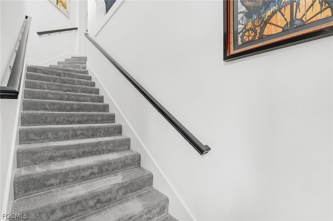 The gourmet kitchen is a true centerpiece, featuring Level 3 granite countertops, custom white cabinetry with pull out shelves, a natural gas range, upper and under-cabinet lighting, a wine cooler, and newer stainless-steel appliances. Stunning backsplash completes the look! Luxury vinyl flooring flows seamlessly throughout, while high-end carpeting on the staircase ensures ease and comfort when entering and exiting the home. Sport membership is available with this residence, offering access to the exquisite amenities that Gulf Harbour provides, including steps to the beautiful, relaxing community pool.