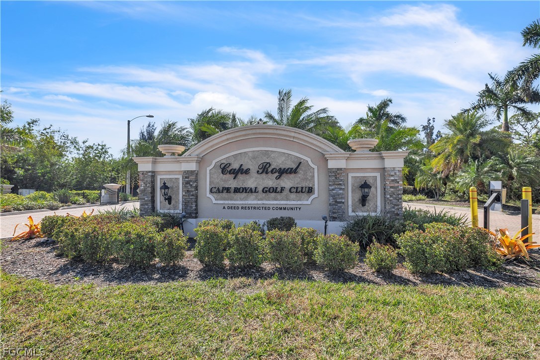 Low HOA, restaurant clubhouse, 27 hole golf with membership optional. This gated, luxury golf community offers championship fairways, a serene atmosphere and is just minutes to the best dining in the area. Welcome to this stunning home in the prestigious Cape Royal community of Cape Coral, where elegance, comfort, and golf course living come together beautifully. This 3-bedroom, 3-full bath residence offers 2,379 square feet of thoughtfully designed living space with a desirable split floor plan for added privacy. From the moment you arrive, you’ll appreciate the paver driveway, impressive double glass door entry that opens into a welcoming foyer and formal dining room. The spacious primary suite is a true retreat, featuring a large heated pool 13’x39’ along with a flexible sitting area perfect for a private lounge space. The luxurious primary bath includes a large walk-in shower, dual vanities, and a dedicated makeup station. The generously sized in-residence laundry room includes a utility tub, washer, and dryer for added convenience. Designed for seamless indoor-outdoor living, all overlooking the beautiful pool with a NE view. Whether you're looking to live in refined elegance or showcase your golfing skills, this exceptional Cape Royal home offers the perfect blend of luxury and lifestyle. Cape Royal boasts a 27-hole public golf course recently upgraded with irrigation, tee boxes, bunkers, and refurbished greens, along with a clubhouse restaurant and bar, tennis courts, bocce and pickleball courts offering an active and vibrant lifestyle. Residents enjoy an equity ownership in the golf course. Located in unincorporated Lee County with NO Cape Coral taxes, X flood zone rating (no flood insurance required).