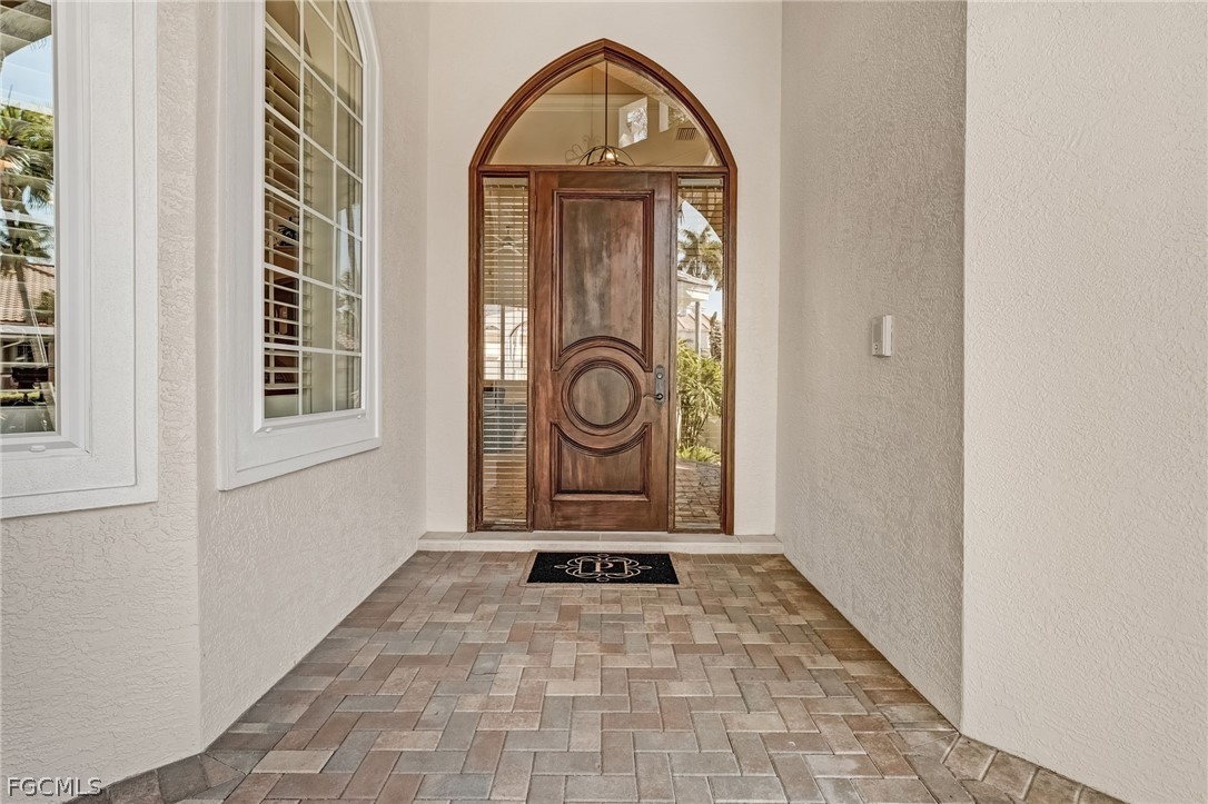 Nestled within the prestigious Edgewater enclave behind the gates of Gulf Harbour Yacht & Country Club, this exceptional custom estate by Kingon Homes embodies refined craftsmanship and timeless sophistication. Set on an oversized corner homesite, the residence presents a stately presence and offers effortless access to the club and marina—just a three-minute stroll or a quick one-minute golf cart ride. The thoughtfully designed courtyard-style floor plan includes three bedrooms plus a private office, three full ensuite baths, and two additional half baths, all arranged for both comfort and elegance.