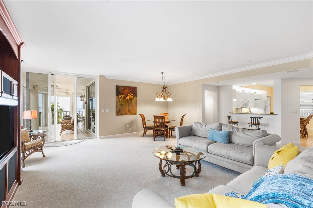 Enjoy spectacular sunsets every evening from this beautifully situated 4th floor condo in The Shores at Gulf Harbour Yacht & Country Club. This spacious residence offers a desirable southwest exposure with panoramic views overlooking the Caloosahatchee River, the marina, and the recently updated private island.
