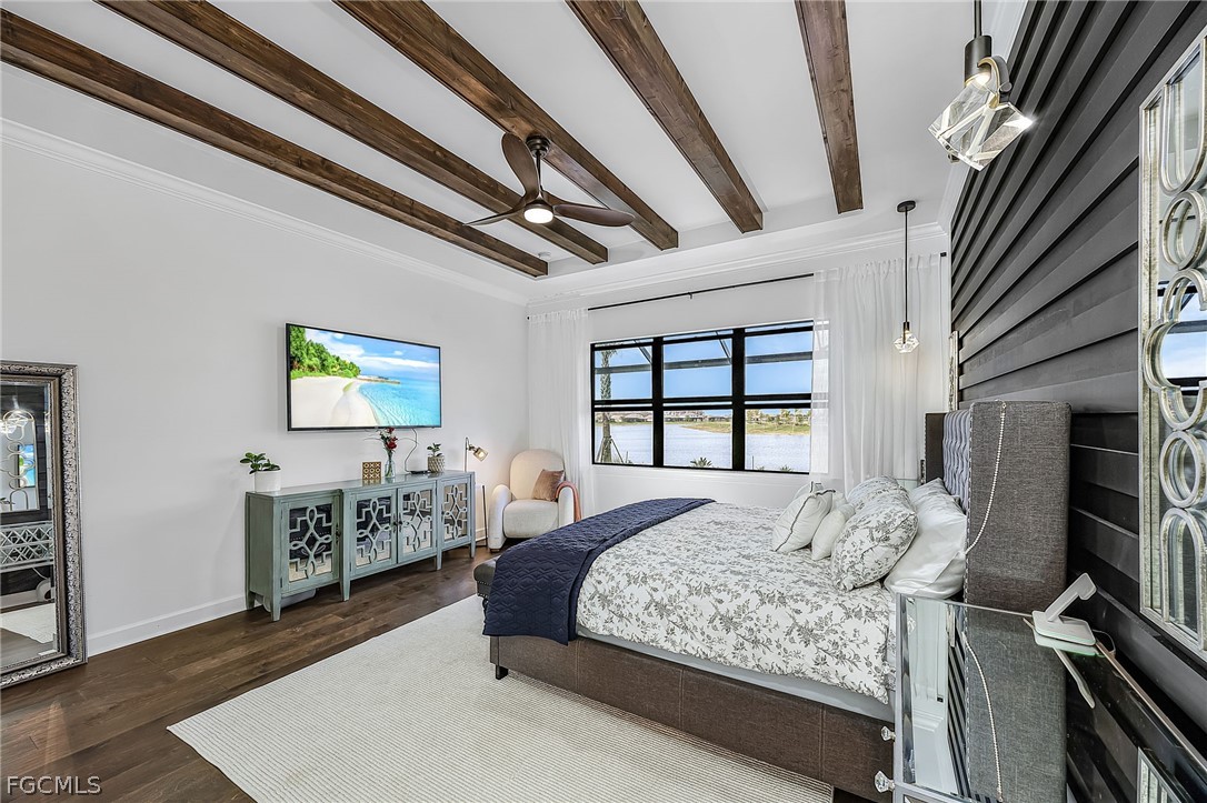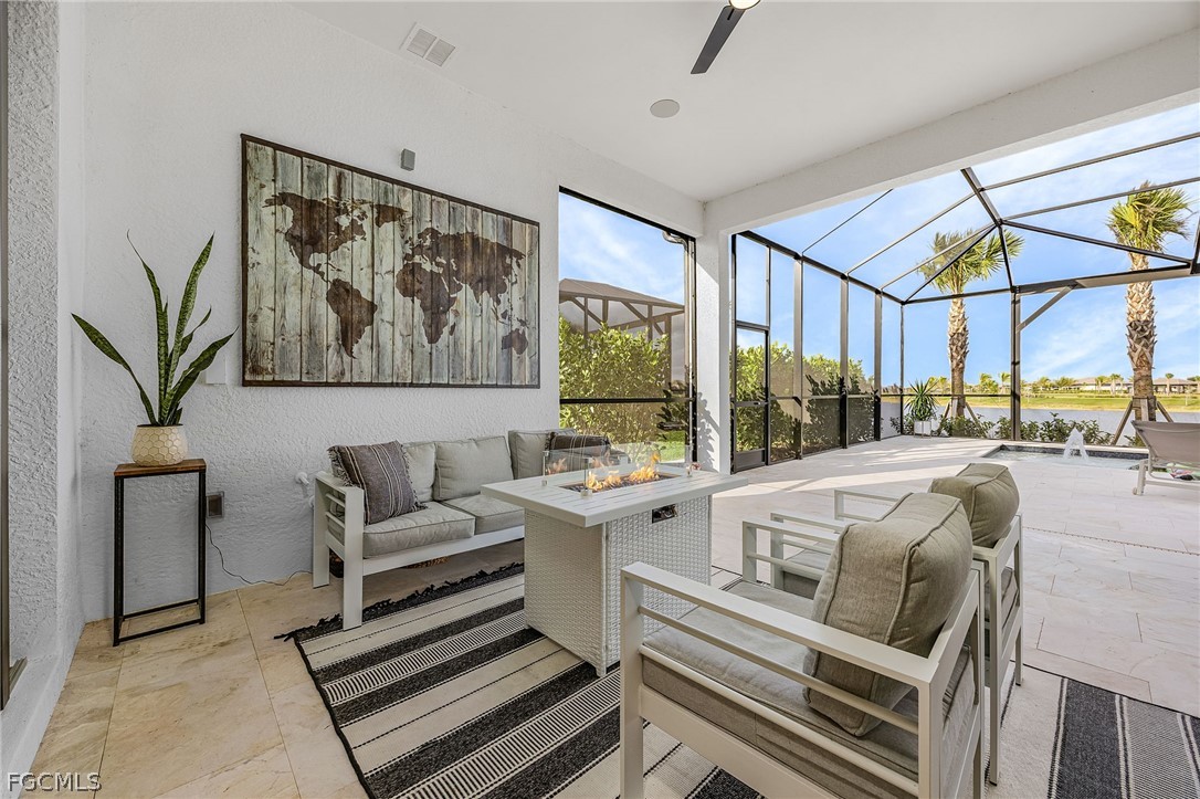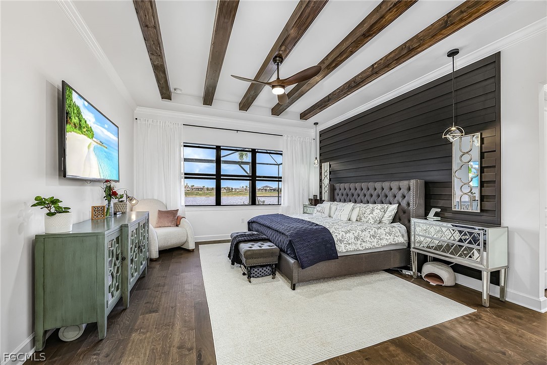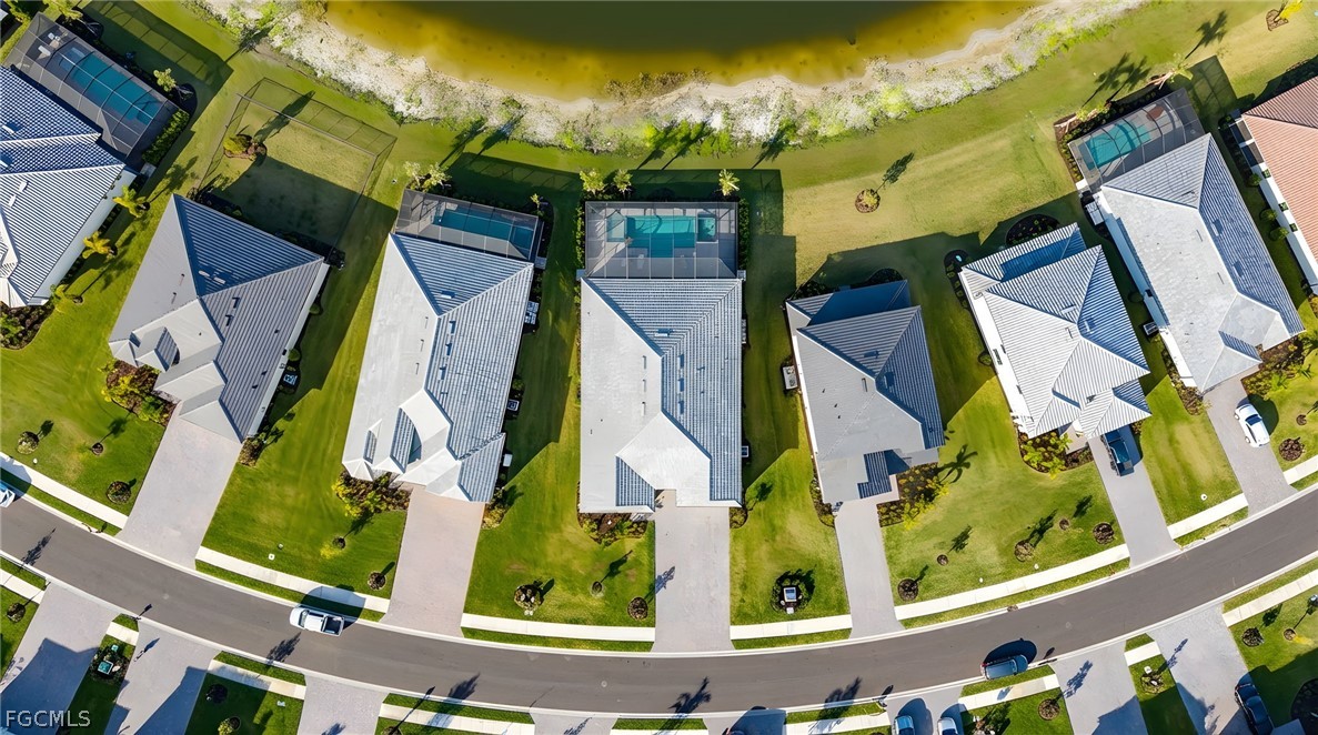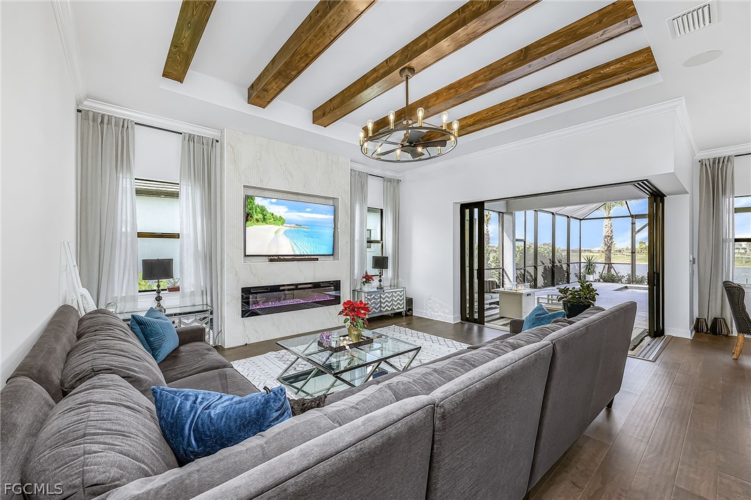 Your meticulous search ends here! Welcome to the highly desirable yet rarely available Renown model. Proudly sitting on an immense .28 acre lot with 95 ft frontage, professionally & elegantly finished by an Award Winning Top Tier Interior Design Team with no expenses spared. Arguably one of the most breathtaking & stunning lake views whilst offering under 2900 Sqft of living space all on one level without the torment of endless stairs. This remarkable home offers rare & rich engineered hardwood flooring throughout, 3 generous size bedrooms situated far apart for privacy and a Den that can be utilized as a 4th bedroom or home office. Custom closet organizers in all closets including the walk in pantry. The Primary bedroom has a massive walk-in closet and overlooks the breathtaking lake & pool. Entertain your family & friends in the top of the line chefs kitchen with the highest level upgrades, quartz countertops, built in stainless steel appliances including a 48" fridge, wine cooler, gas cooktop, massive island & walk in pantry. Two-toned cabinetry, arabesque marble backsplash & designer light fixtures adds warmth & brings it all together. Family room equipped with a custom entertainment unit, designer tile, built in fireplace, Samsung sound bar & subwoofer with deep bass perfect for movie nights or watching sporting events. The zero corner sliders lead you to the truly exceptional outdoor paradise with a custom designed heated, saltwater pool with spillover spa, sun deck with bubbler for the little ones or your furry friends, fountains, pool bath & panoramic view pool enclosure with Clusia privacy trees. A fully extended pool deck with large, white travertine paver stones & pre-plumbed for an outdoor kitchen. With a sought after floorplan, this home offers an oversized laundry room and a separate powder room that guests can use without having to enter any bedrooms. Abundant upgrades include Wood beam ceilings, crown molding throughout, designer light fixtures, faucets, vanity mirrors, accent walls in all bedrooms, frameless glass showers & upgraded shower tiles, quartz counters, custom drapery, ceiling fans, a three car garage with upgraded 4 ft extension & epoxy flooring, whole house water treatment system, pre-wired family room speakers, Wifi extenders & outdoor cameras and a garage outlet for electric vehicles. Verdana Village is one of the most sought after upscale communities. Indoor basketball, indoor/outdoor pickleball, tennis & ice cream parlor. Multiple breathtaking pools, hot tub, bars and restaurants with excellent culinary selections. Ride your golf cart to Publix, Liquor Store, UPS, Nail Salon, Award Winning Hair Salon, Dunkin Donuts, Physio, Italian Restaurant & more commercial amenities planned in the near future. A beautiful home with all the bells & whistles, sitting on a premium lot with stunning lake views in an upscale community fit for the most discerning buyer in an area that will only continue to grow. Welcome Home.