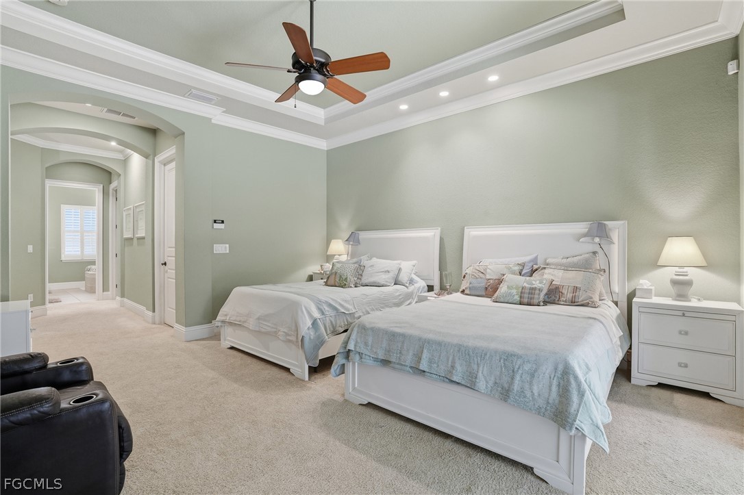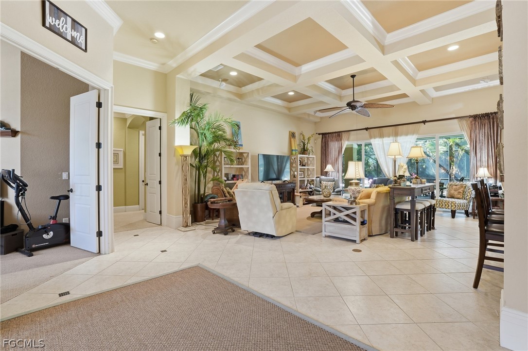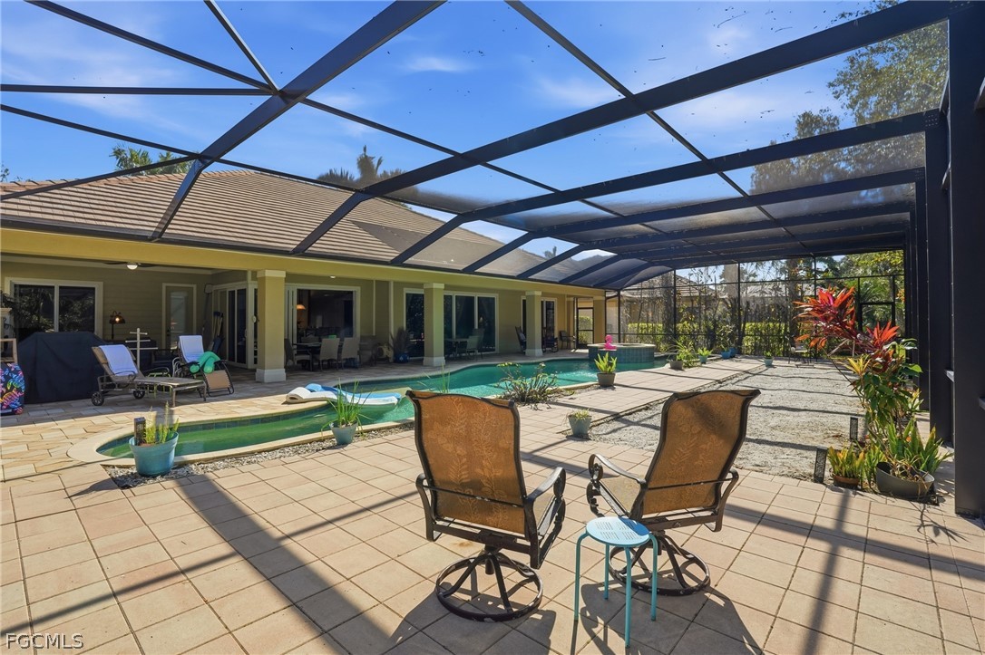 Offered turnkey, this River Point residence redefines luxury living with a design centered around seamless indoor-outdoor enjoyment. From the moment you step through the foyer, the architectural details set the tone: coffered ceilings stretch across the main living areas and tray ceilings add dimension in select rooms. Natural light pours through the home, highlighting the open-concept design and expansive gathering spaces. The kitchen is both striking and functional — anchored by a statement range, gas stove, double ovens, a walk-in pantry, built-in cabinetry, and a generous bar that invites conversation long after dinner is served. It flows seamlessly into the main living area, creating a space that feels grand yet welcoming. The true showpiece is the expansive screened lanai and pool deck spanning the entire back of the home - one of the largest in the community. Every rear-facing room opens directly to this outdoor retreat, where a picture-window screen frames tranquil preserve views. The custom, oversized pool and spa take center stage, complemented by a gas fireplace, grill, and even a unique sandbar lounge area — a rare touch that turns everyday evenings into resort-style experiences. The primary suite is its own sanctuary, featuring a walk-through “car wash” shower, soaking tub, dual vanities, and an oversized custom closet with built-ins. Two additional bedrooms each offer generous proportions and private baths, ensuring comfort and privacy for guests. Set against a peaceful preserve backdrop, this home offers privacy without sacrificing lifestyle. As a resident of Verandah, you’re not just buying a home — you’re stepping into a vibrant community lifestyle and can enjoy two championship golf courses, pickleball, tennis, bocce, a fitness center overlooking a resort-style pool, and private Orange River kayaking access. Luxury, lifestyle, and privacy. This is Florida living reimagined — refined, relaxed, and ready to enjoy from day one.