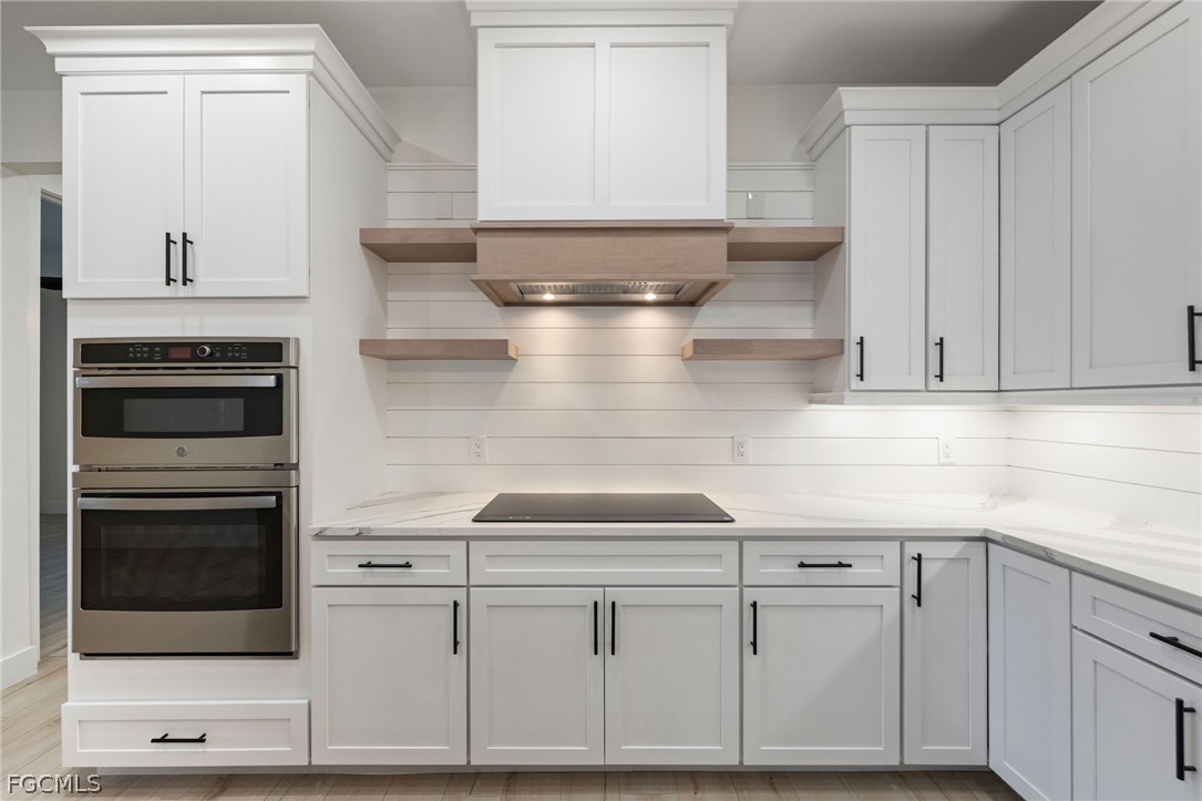 The open floor plan was designed for both everyday comfort and unforgettable entertaining. The kitchen is the showpiece, featuring a massive island, custom shelving, sleek finishes, and effortless flow into the dining and living areas. It’s the kind of space where everyone gathers.