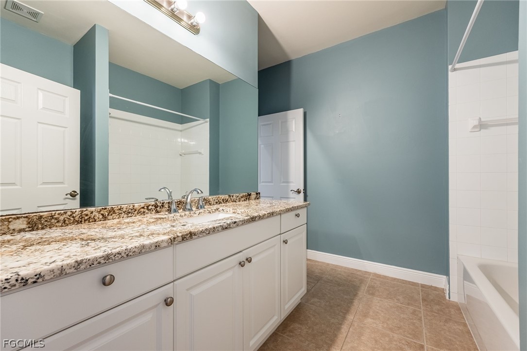 Laundry room has storage cabinets and a handy utility sink. Tiles and vinyl flooring throughout. Screened shaded lanai and a double garage.
