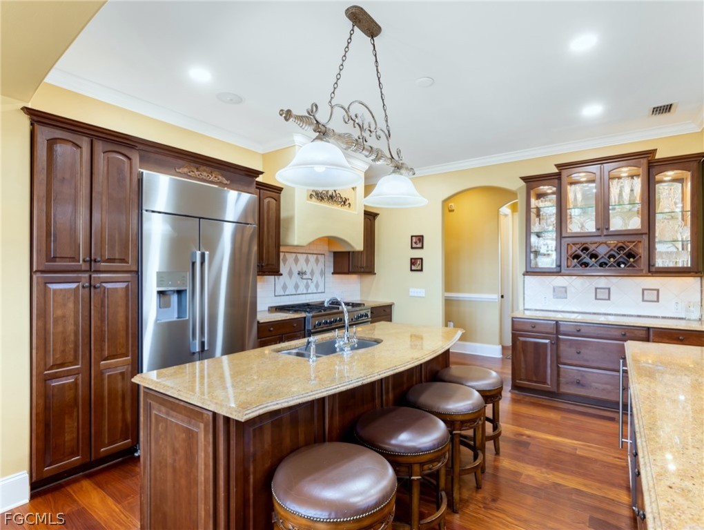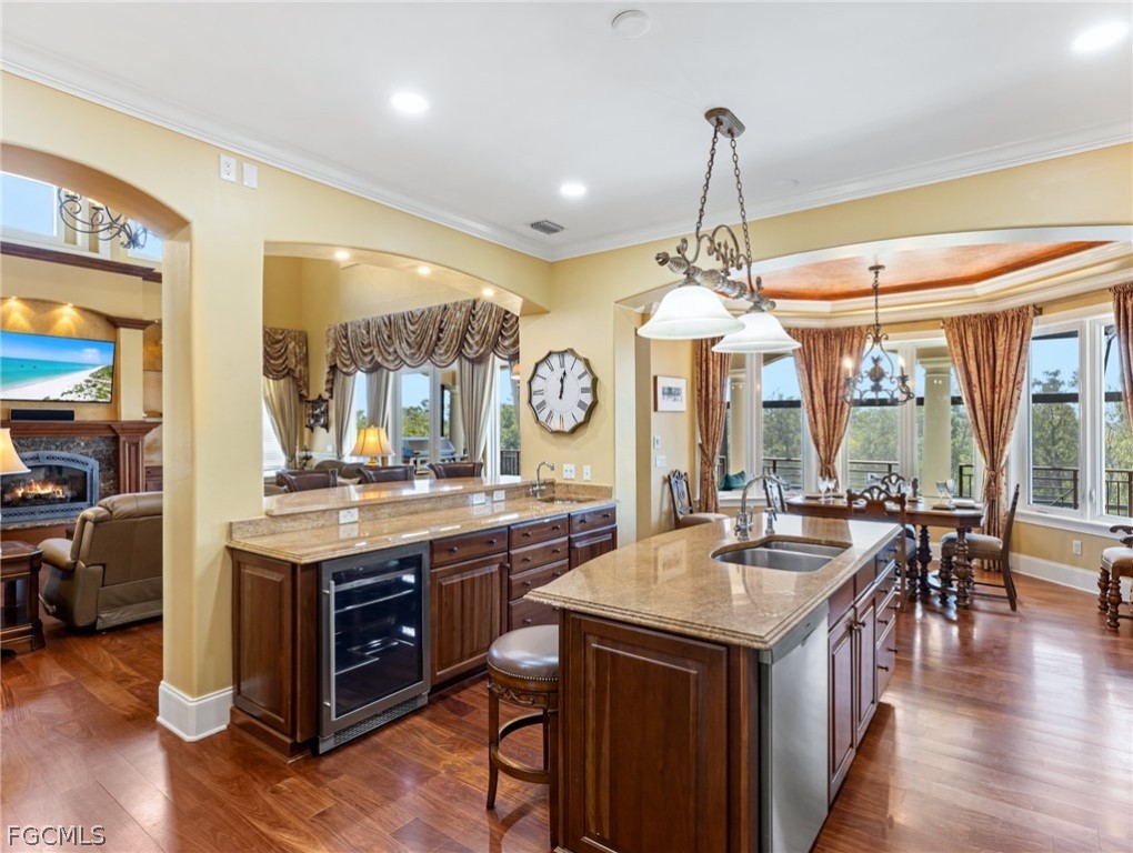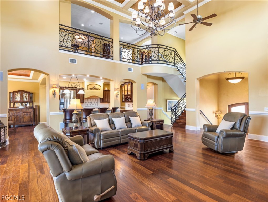 Palm Isles is the saltwater location, location, location for your Southwest Florida boating lifestyle! This fabulous 3-story custom home is literally built like a fortress! Situated on a direct gulf-access waterfront lot near Fort Myers Beach this multi-story stunning residence overlooks state owned mangrove preserve. Living areas on levels 2 and 3 total 3406 sq ft. Level 1 includes an oversized 2-car garage measuring 653 sq ft PLUS an additional 1800 sq ft of bonus area! Watch the video and view the photos! This Dan Sater Collection luxury home was meticulously designed and built to be aesthetically pleasing from all four sides. An elegant front entry foyer rises to a soaring coffered ceiling great room you must experience to believe. The word kitchen does not adequately describe the culinary entertaining space where you will be cooking with gas utilizing a DCS professional range accented with pasta pot filler. 4 bedrooms, 3 full baths, 1 half bath, elevated loft overlooking great room, abundant closets for storage, mahogany wood flooring, lighted tray ceilings, and two laundry rooms for ultimate convenience. Primary bedroom suite provides sweet dreams, lighted double tray ceiling, veranda access, waterfront preserve views, and two walk-in closets. This primary bath was created for optimal personal enjoyment with jetted tub for soaking, separate shower with multiple sprays, dual sinks, and cosmetics vanity. Outdoor living begins on the spacious Florida front porch and expands to a rear elevation only Dan Sater could imagine. Encapsulated within a brand new 2-story picture-window pool cage is a gas heated pool, integrated spa, 1000 sq ft pool patio, 1000 sq ft lanai, and 1000 sq ft veranda. The top floor balcony observation deck enables views across the mangrove forest canopy all the way to the gulf beaches horizon. Real outdoor living begins in your favorite boat moored out back! An 1100 sq ft wrap-around dock features a 15k lb boat lift, electric, water, and fish cleaning station. Incredibly important to know, this 120 ft wide canal is maintained by NE Hurricane Bay MSTU to a maximum navigable depth! A 500-gallon underground propane tank provides an efficient energy source for the fireplace, summer kitchen grill, tankless water heater, clothes dryer, professional range, and pool heater. No expense was spared when this architectural masterpiece recently underwent a comprehensive $145,000 waterproofing project with transferable extended warranties covering every square inch including a new premium flat tile roof, stucco integrity analysis, powder coated aluminum railings, window sealing, and professional-grade paint. This home even has a cool attic insulated with Isynene spray foam on the underside of the roof decking! Call now to learn more.