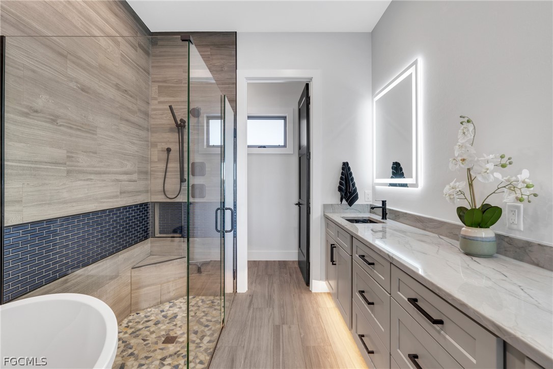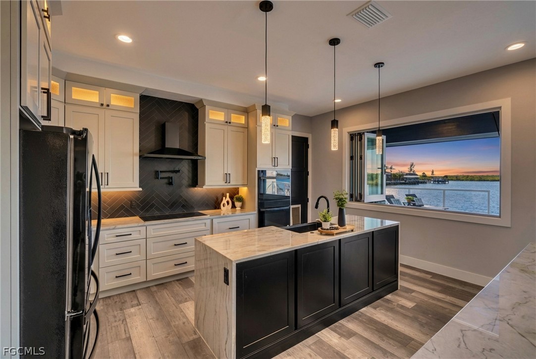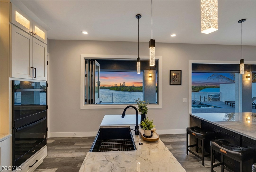 Experience the pinnacle of modern coastal luxury in this custom-built 2025 waterfront masterpiece with direct sailboat access to the Gulf. Thoughtfully designed for innovation, comfort, and elevated entertaining, this exceptional residence offers 3,784 square feet of impeccably crafted living space. The home features 3 oversized bedrooms, a private office, a dedicated theater/flex room with bar, and 4.5 beautifully appointed bathrooms. Each spacious bedroom includes its own en-suite bath, ensuring privacy and comfort for family and guests. One guest suite is uniquely appointed with a private washer and dryer, creating an ideal retreat for extended stays or multigenerational living. At the heart of the home, the show-stopping chef’s kitchen is designed to impress. Complete with a pot filler at the stovetop, two expansive waterfall-edge islands with seating for eight, and a walk-in butler’s pantry featuring a second dishwasher, this space is perfectly suited for effortless entertaining and everyday living. Motion-activated kick lighting in the kitchen and primary bath adds a sleek designer touch, while dimmable lighting throughout allows you to create the perfect ambiance in every room. Built for both durability and efficiency, the home is equipped with hurricane impact windows and doors, Icynene spray foam insulation for superior climate control and sound reduction, a whole-home reverse osmosis system, and a Fuji septic system for long-term reliability. The entire residence is wired for CO-AX and HDMI, ensuring seamless entertainment integration throughout. Even pets are considered, with a custom dog room featuring foil-lined walls for durability and easy maintenance.