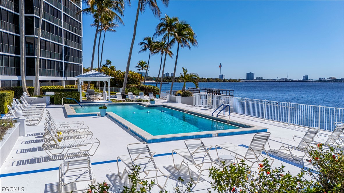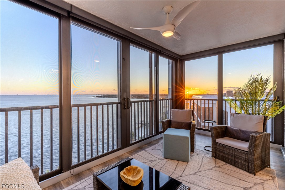 Experience sweeping, panoramic views of the Caloosahatchee River and the sparkling skyline of Fort Myers — all from this beautifully furnished, turnkey residence.