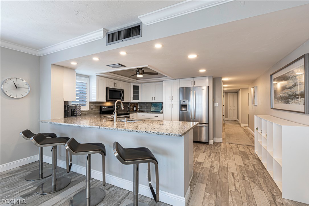 This thoughtfully renovated condo showcases updates throughout, including a redesigned kitchen, two fully remodeled bathrooms, tile flooring, fresh interior paint, and impact-resistant windows and sliders. Every detail has been carefully curated, allowing you to move in and immediately enjoy the waterfront lifestyle.