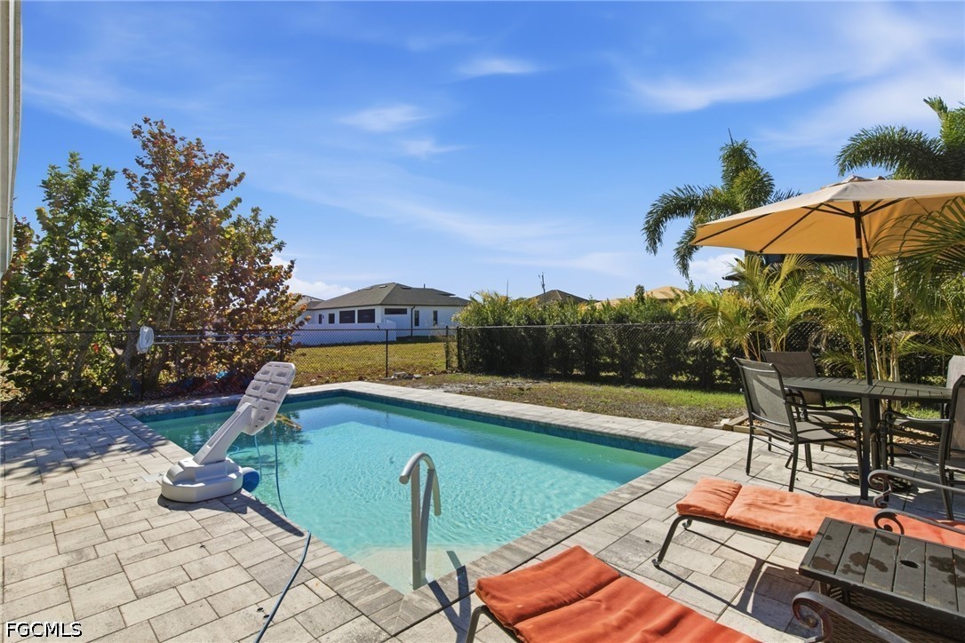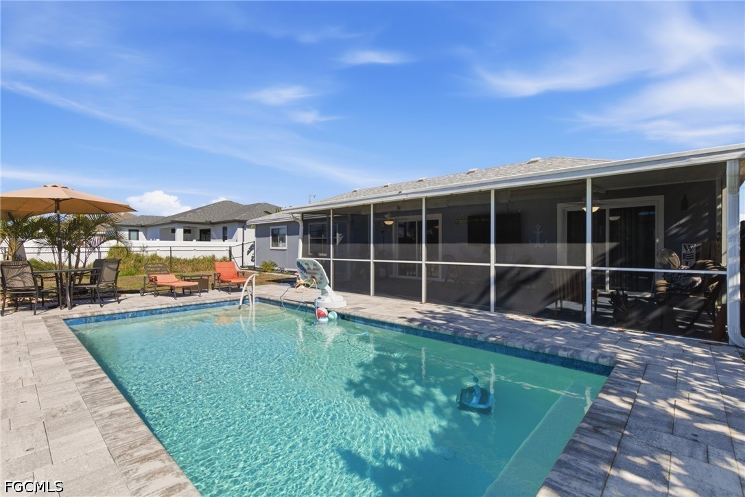 Welcome to this adorable 3 bedroom, 2 bathroom, pool home conveniently located in the Burnt Store Road area near the newly approved Seven Lakes Project in NW Cape Coral. This split bedroom floor plan offers privacy as well as a moderately open concept with designated dining room, living room and bonus area that can utilized for a reading nook or bar area. The home offers vaulted ceilings, updated kitchen with solid wood cabinets, granite countertops and stainless steel appliances. The completely screened in lanai area is perfect for overflow gatherings as well as a completely fenced in backyard with a newer inground pool installed in 2021. The roof is 2020 giving you peace of mind of not having a replacement needed anytime soon and withstood all major storms in the past 4 years without damage. Home is conveniently placed amongst multi-million dollar, Gulf Access, homes giving you that luxurious Florida lifestyle without the huge price tag of owning a home. Extra bonus, all assessments are in and PAID IN FULL. This would be the perfect starter home, investment property, or second home for that new to the area buyer. Call us today for your private tour, you won't be sorry you did! Seller has an ASSUMABLE FLOOD POLICY currently at the rate of $1692/annually.