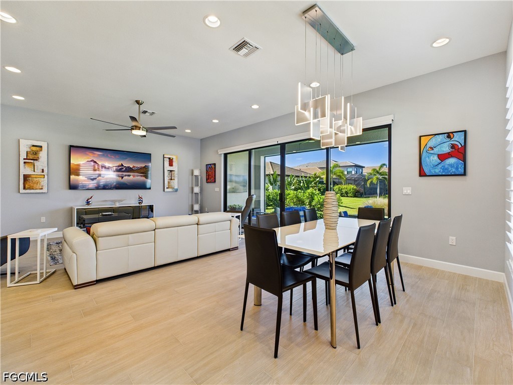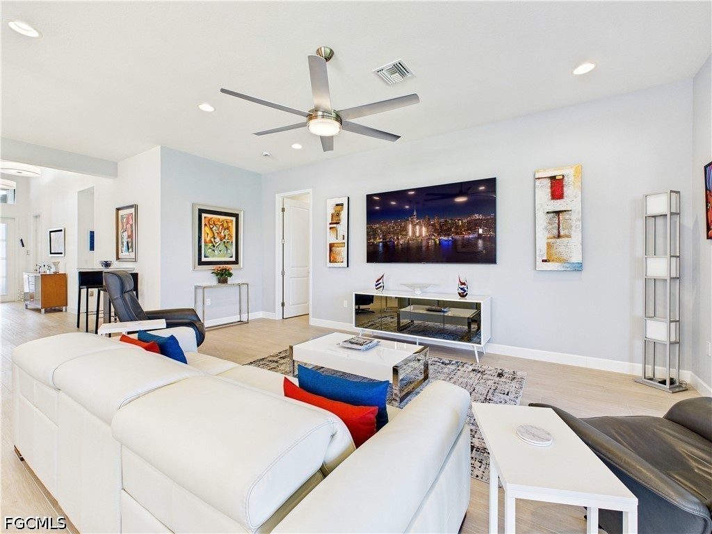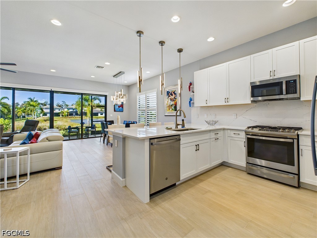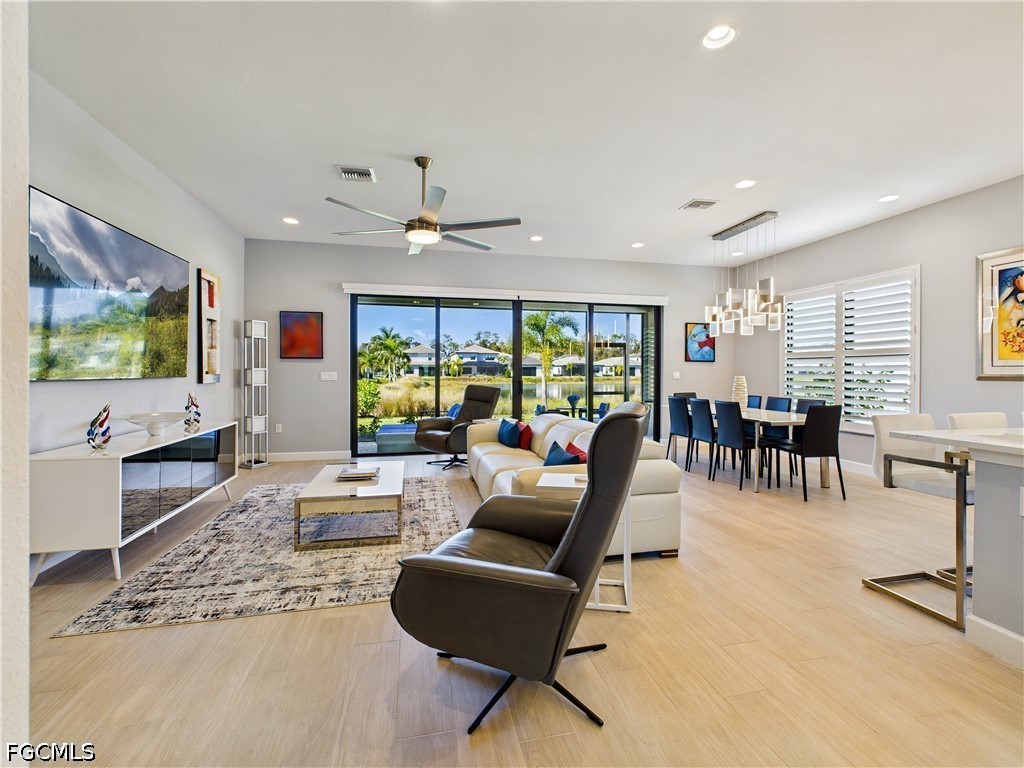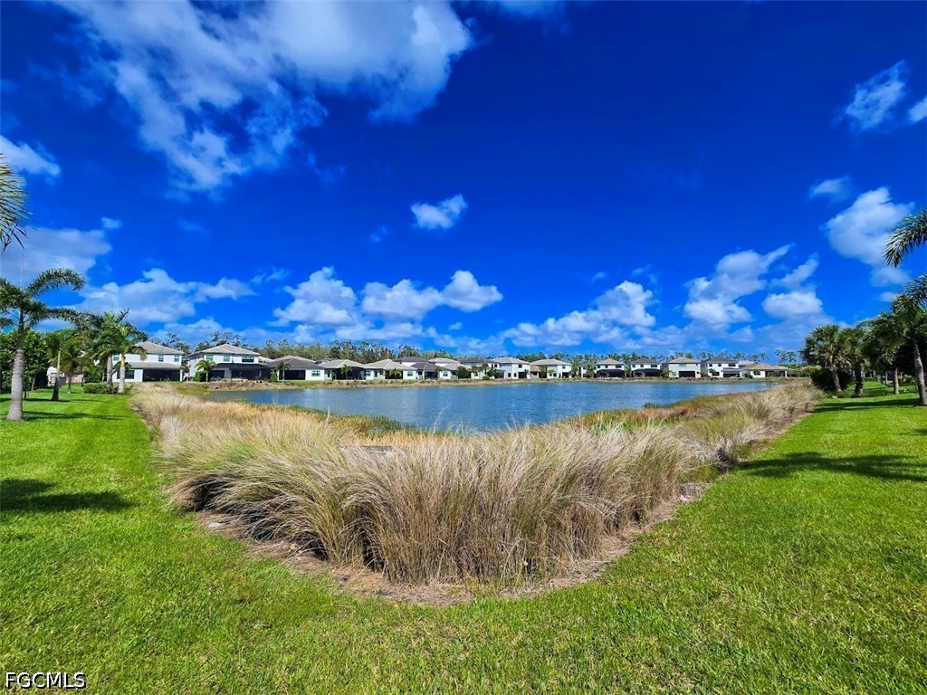 LIKE NEW -- SINGLE-STORY LAKEFRONT RESIDENCE (NOT IN FLOOD ZONE), 3 BEDROOMS + DEN (or optional 4th bedroom), 3 FULL BATHROOMS & 2 Car Garage! UPGRADES INCL: HURRICANE RESISTANT WINDOWS & DOORS, 8”x 48” TILE PLANK FLOORING THROUGHOUT, Luxurious Lighting Fixtures/Fans & Plantation Shutters! CHEF'S KITCHEN has Stunning Quartz Countertops & Backsplash, 5’ x 9’ Counter Height Breakfast Bar, 42" White Shaker Cabinets/Pantry and Stainless-Steel Appliances. NATURAL GAS Oven, Dryer, and Hot Water Heater for High Efficiency and Performance. FRAMELESS SHOWER DOOR, NEW KOHLER CHAIR HEIGHT one-piece TOILETS, BRUSHED NICKEL KOHLER Master Bath Fixtures. CUSTOM CLOSET CABINET SYSTEMS in both owner closets and remote-controlled SOLAR SHADES in the Great Room. TOWERING VOLUME CEILINGS and 8’ DOORWAYS create an open and airy feel. NEW Epoxy Garage Floor for durability and style, Tile Roof, Paver Driveway and Screened Lanai with mounted 55" Smart TV. UPSCALE FURNISHINGS NEGOTIABLE! LUSH LANDSCAPING with Bougainvillea, Hibiscus & Palm Trees enhance curb appeal. PLENTY OF ROOM for a POOL (see virtual pool photo). GORGEOUS SUNSETS from the Great Room, Kitchen, Dining Room and Lanai. RING-style Doorbell/Security System & Digital WIFI Thermostat for AC. RIVERCREEK COMMUNITY & AMENITIES (opened in December 2024): Residents enjoy LOW HOA FEES with 24/7 Guard Gate Security, Lawn Care, Irrigation, Exterior Pest Control and an unmatched AMENITY PACKAGE. Walk to the 12,000 sqft CLUBHOUSE with indoor SPORTS COMPLEX (Basketball, Fitness, Yoga Studio, Billiards, Card/Game Room, Catering Kitchen, Lounge, Meeting Room). RESORT-STYLE POOL w/Cabanas, 6 Lighted PICKLEBALL Courts, 4 Lighted TENNIS Courts, BOCCE, Outdoor BASKETBALL, PLAYGROUND, SPLASH PARK, FIREPIT, PICNIC area & SIDEWALKS throughout for easy access to amenities. This home combines LUXURY FINISHES and RESORT-STYLE LIVING by an AWARD-WINNING BUILDER in one of Southwest Florida’s most DESIRABLE & Growing LOCATIONS close to: Miromar Outlets, Coconut Point, University Village, Gulf Town Center, Florida Gulf Coast University, Lee Health Hospital, Public Golf Courses, Estero Park & Sports Complex, Walking Trails & Bike Paths. RSW AIRPORT & I-75 are just minutes away for easy access to the BAREFOOT BEACH, Fort Myers Beach, LOVER'S KEY and all that NAPLES has to offer! This is the PERFECT Primary and Vacation Residence or as a Seasonal or Annual Rental for Investors (no waiting period)! PET FRIENDLY (no restrictions on weight or number of pets)!
