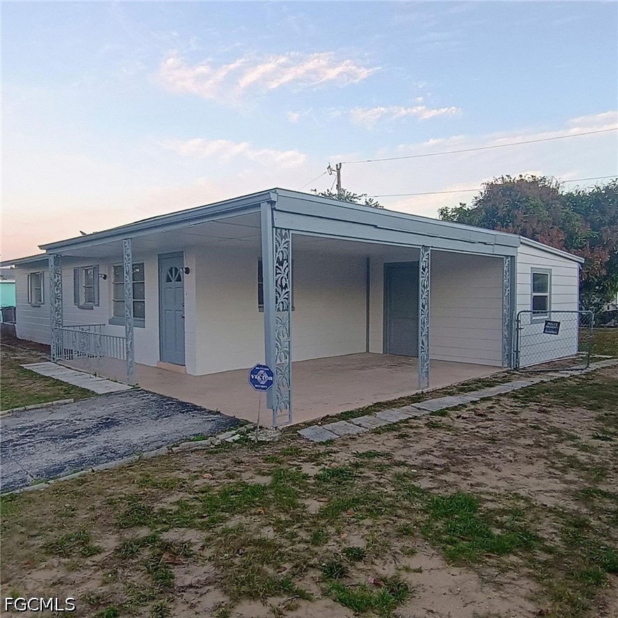 Secure Parking: Includes a paved driveway leading to a spacious covered carport with direct access to a storage or utility room.