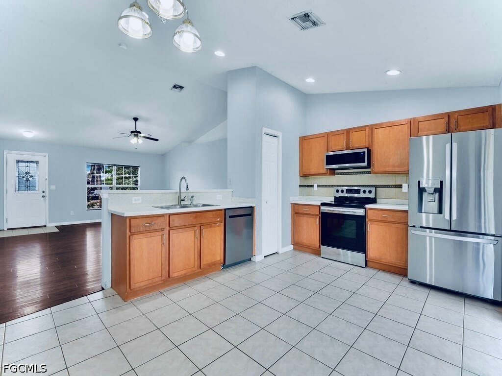 Welcome home to this recently UPDATED & freshly painted FENCED 3/2 peaceful property nestled away on a quiet street in the highly desirable West side. It spotlights a (2023) dimensional shingle roof, (2022) HVAC system, newer STAINLESS STEEL appliances, and a (2022) softener system. This spacious split floor plan also highlights Cathedral ceilings, an awarding breakfast bar with CORIAN countertops & tiled backsplash, attractive wood & tile flooring throughout, a desirable soaking tub, WALK-IN in closet with organizers, and laundry room under air with washer & dryer. It also features fruit trees, storage shed, recessed lighting, HIGH SPEED internet, new fixtures, a pantry, and an Oversized Covered lanai great for entertaining. Just minutes from major amenities and a quick commute to Fort Myers. Schedule your showing today!