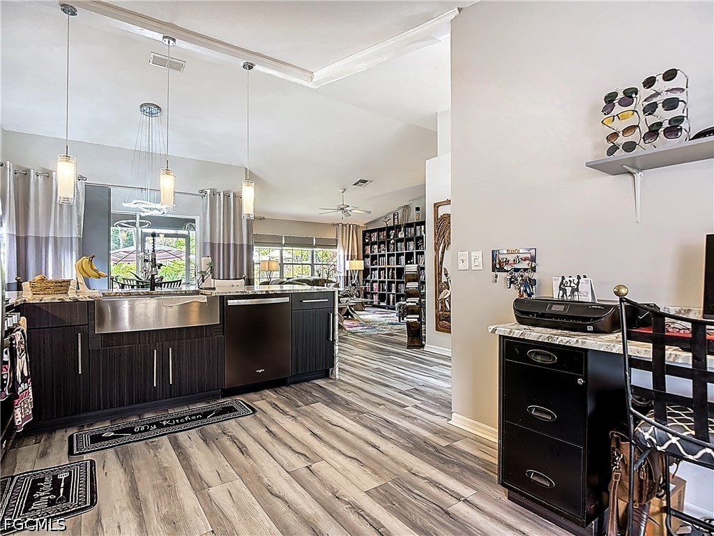 Step inside to find new luxury vinyl flooring throughout—no carpet anywhere! The completely remodeled kitchen features new cabinetry, granite countertops with a waterfall edge, and stainless steel appliances (approx. 5 years old). Both bathrooms have been tastefully remodeled with new vanities, solid-surface counters, updated sinks, and designer touches like wainscoting and shiplap.