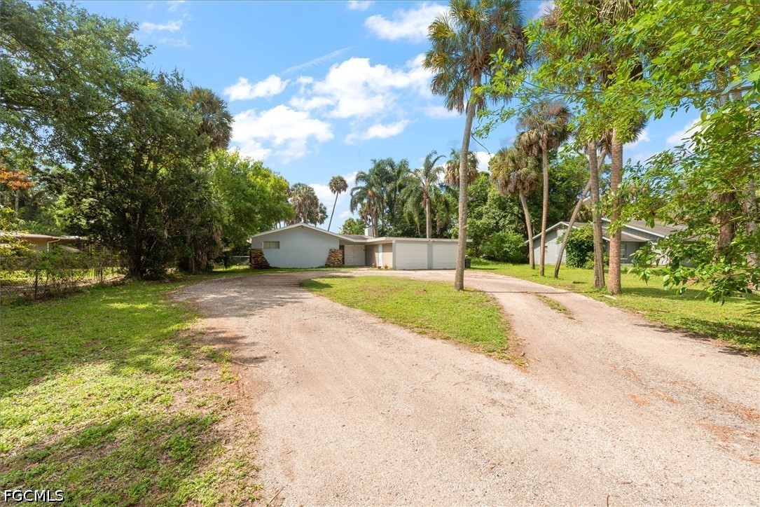 Investor OPPORTUNITY in North Fort Myers. Situated on nearly half an acre, this property offers a spacious layout, solid bones, and exceptional potential for renovation. The large lot is enhanced by mature trees, an expansive driveway, and a unique courtyard-style design that provides endless possibilities for reimagining the space. Roof replaced in 2011. Property requires updating and repairs and is priced accordingly.