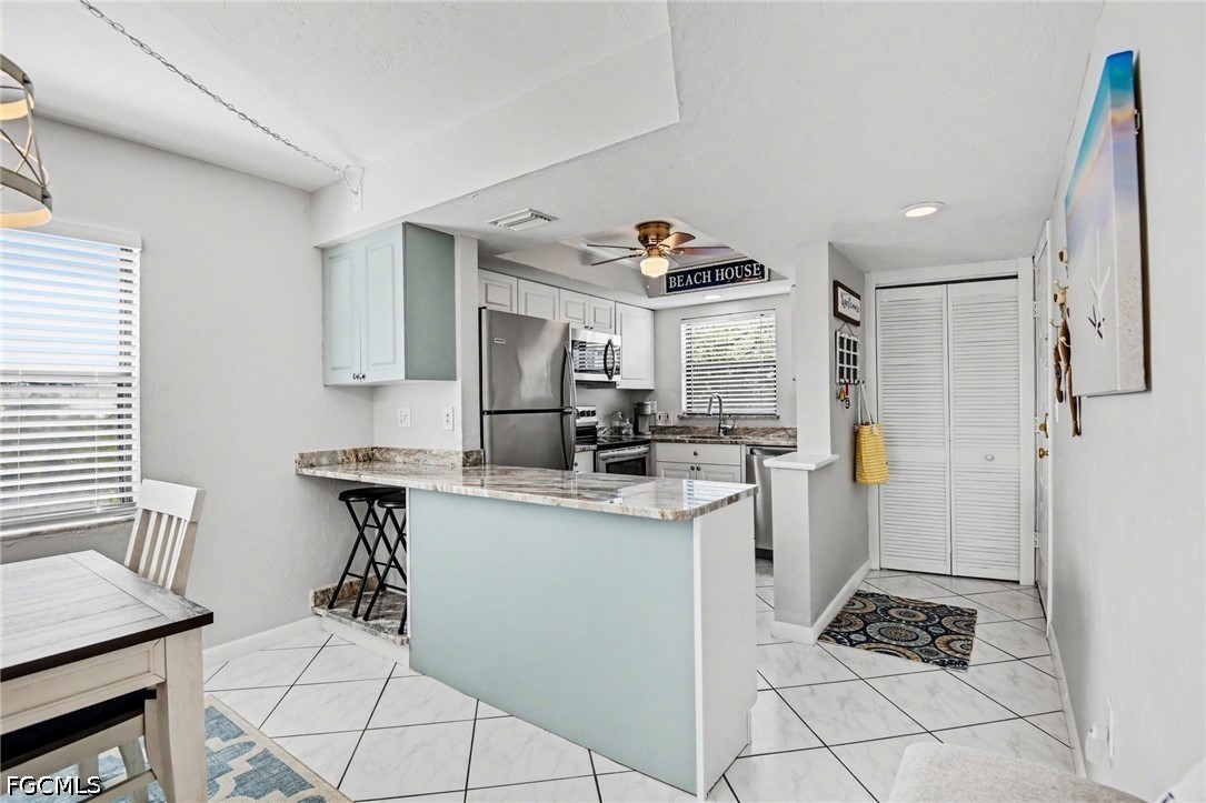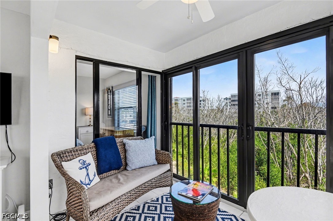 Updated CORNER 2BR/2BA condo (turnkey furnished) that's right across the street from the Gulf of Mexico! With windows on the north, south and east side, this unit is lit with natural light. Easy to care for large diagonal tile flooring is throughout the unit. The former lanai has been integrated into the main living space, and with the addition of glass sliding windows on the screens, the living area has been significantly expanded. You will love how this unit has been decorated in a modern yet beachy vibe and all the furnishings are included. The galley kitchen boasts updated countertops, stainless steel appliances and extended breakfast bar. There's even a clever hidden pantry for some extra storage. The owner’s suite features a spacious walk-in closet, en-suite bath, and direct access to the all-weather room. The A/C condenser/air handler were replaced in 2023. The water heater and PVC plumbing were both replaced approximately 3 years ago. Bath toilets and sinks were replaced approximately 2 years ago. The seller's also installed a hard-wired Sensi smart thermostat. Storage locker included. Covered (under-building) parking is available for owners on a first come, first served basis. Amenities at Estero Cove include: Community Pool; Tennis & Pickleball Courts; Bocce Court; Shuffleball Court; Nature Trail w/Fishing bridges and Estero Bay fishing pier. For boating enthusiasts, a nearby marina offers boat rentals and dry stack storage, making it easy to get out on the open waters of the Gulf or use Estero Bay to head to our popular north end restaurants and bars. Whether you're searching for a full-time home, vacation escape, or an income-generating rental, this condo checks all the boxes. Plus, with shopping, dining, and entertainment just minutes away, and easy access to Bonita Springs and Naples, you’ll love the prime location. Don’t miss out—schedule your private showing today and start living the island dream!