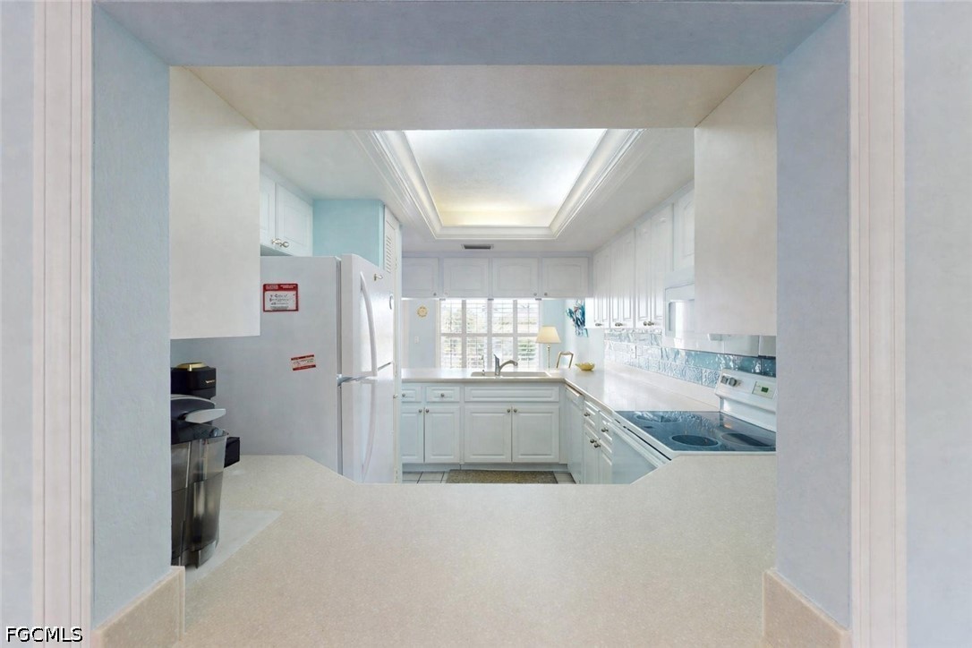 Well appointed kitchen with island flows seamlessly into the living and dining areas ideal for both entertaining and relaxing. Primary Bedroom features an en-suite bath, tranquil water views and direct access to your screened lanai. Additional features include assigned covered parking, in-unit laundry, storm protection and an additional storage unit.