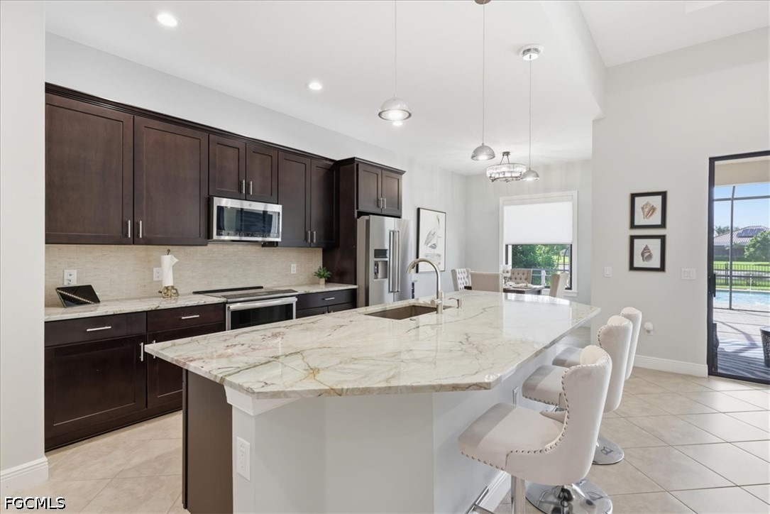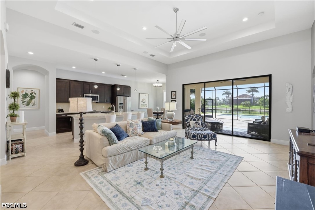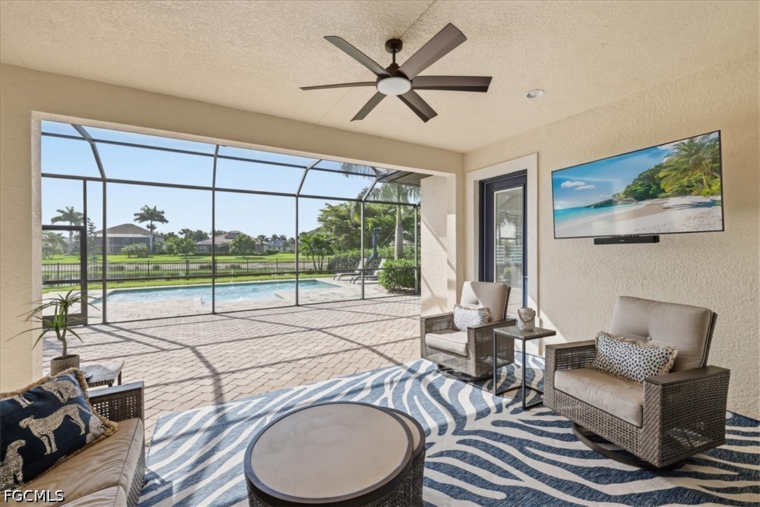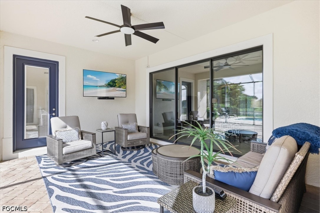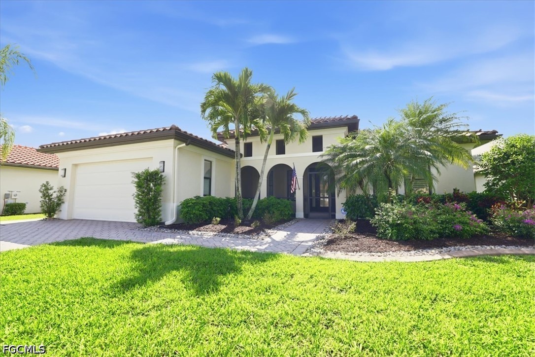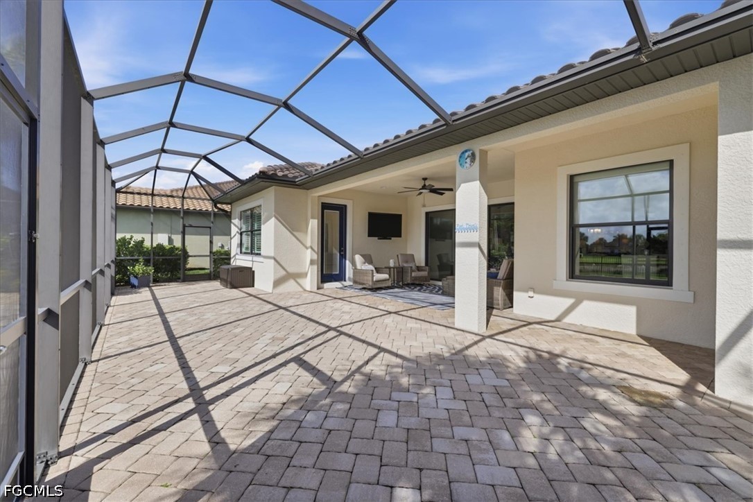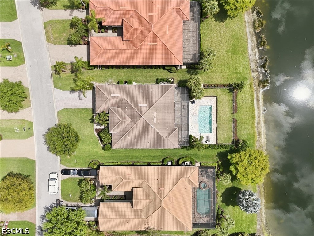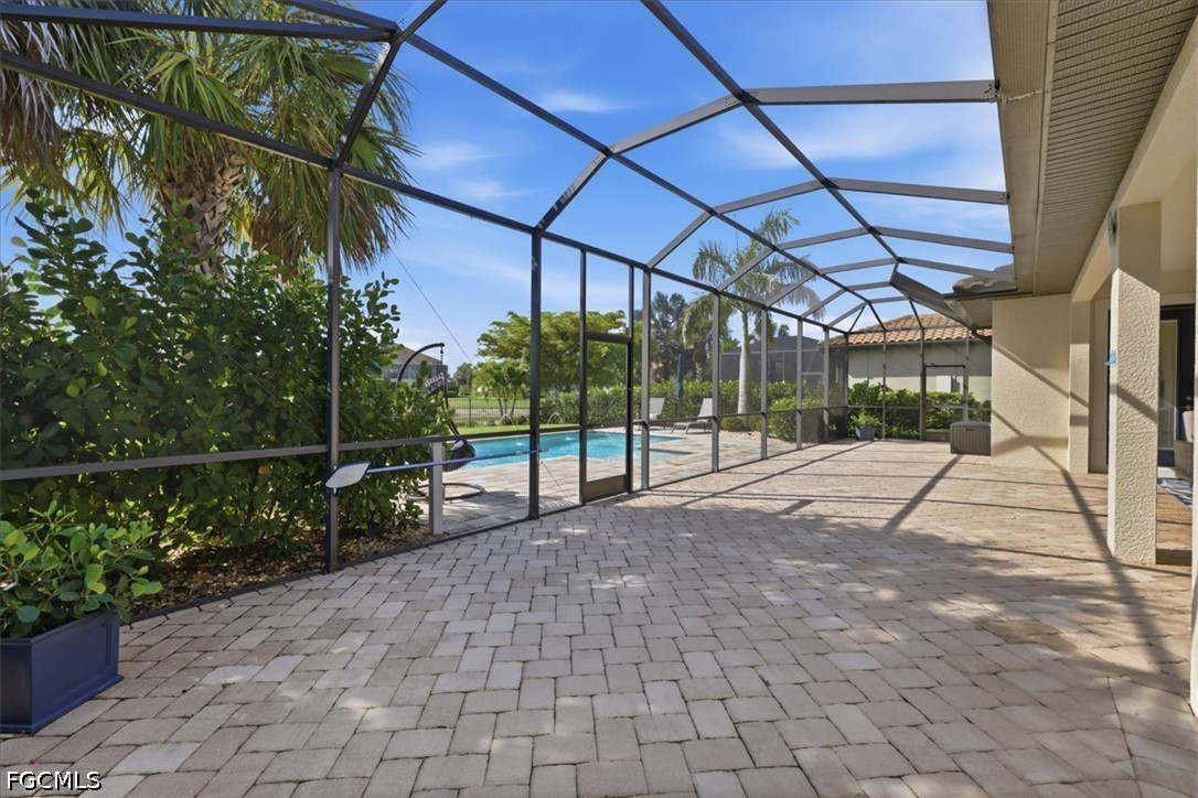 It doesn't get better than this 2013 built WCI Correggio Model Home with 8' doors in the coveted Hampton Park Community. This beautifully maintained home is just waiting for you to make your memories and dreams come true. With over 2400 sq ft, this 3 bedroom, plus a den, 2 bath, open floor plan offers an abundance of storage, an oversized screened in lanai for entertaining, and lets not forget that VIEW!!!! This home sits back in Hampton Park on a .33 acre lakefront lot, open air heated saltwater pool and completely fenced in backyard. Notable highlights include, tile throughout with wood plank tile in bedrooms, newer appliances (Refrigerator replaced in November of 2025), brand new AC unit (August of 2025), 42" soft close cabinetry with under and over cabinet lighting, plantation shutters, new washer and dryer (August of 2025), new light fixture in the breakfast nook as well as master bathroom, and fresh exterior mulch. Home offers whole room surround sound, battery backup for overhead garage door, paver decking on lanai, around the pool and driveway, extra enclosed storage on lanai, and screened in front entry porch. Hampton Park not only offers Xfinity Cable, fiber optic internet and gated entry, they also offer a fitness center, heated pool, billiards room, playground, pickleball and basketball courts, with stainless steel grills with fireplace poolside, rounding out the amazing resort style amenities. Property is located in FLOOD ZONE X, which means FLOOD INSURANCE is NOT required. Call to schedule your private showing today, you won't want to miss this one.